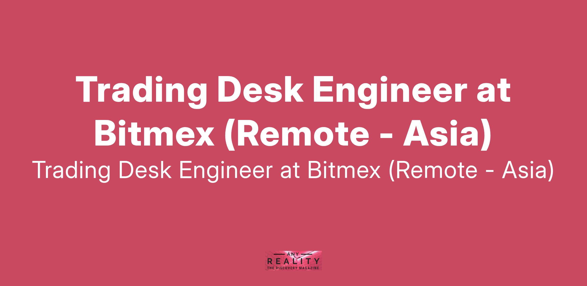 Trading Desk Engineer at Bitmex (Remote - Asia)