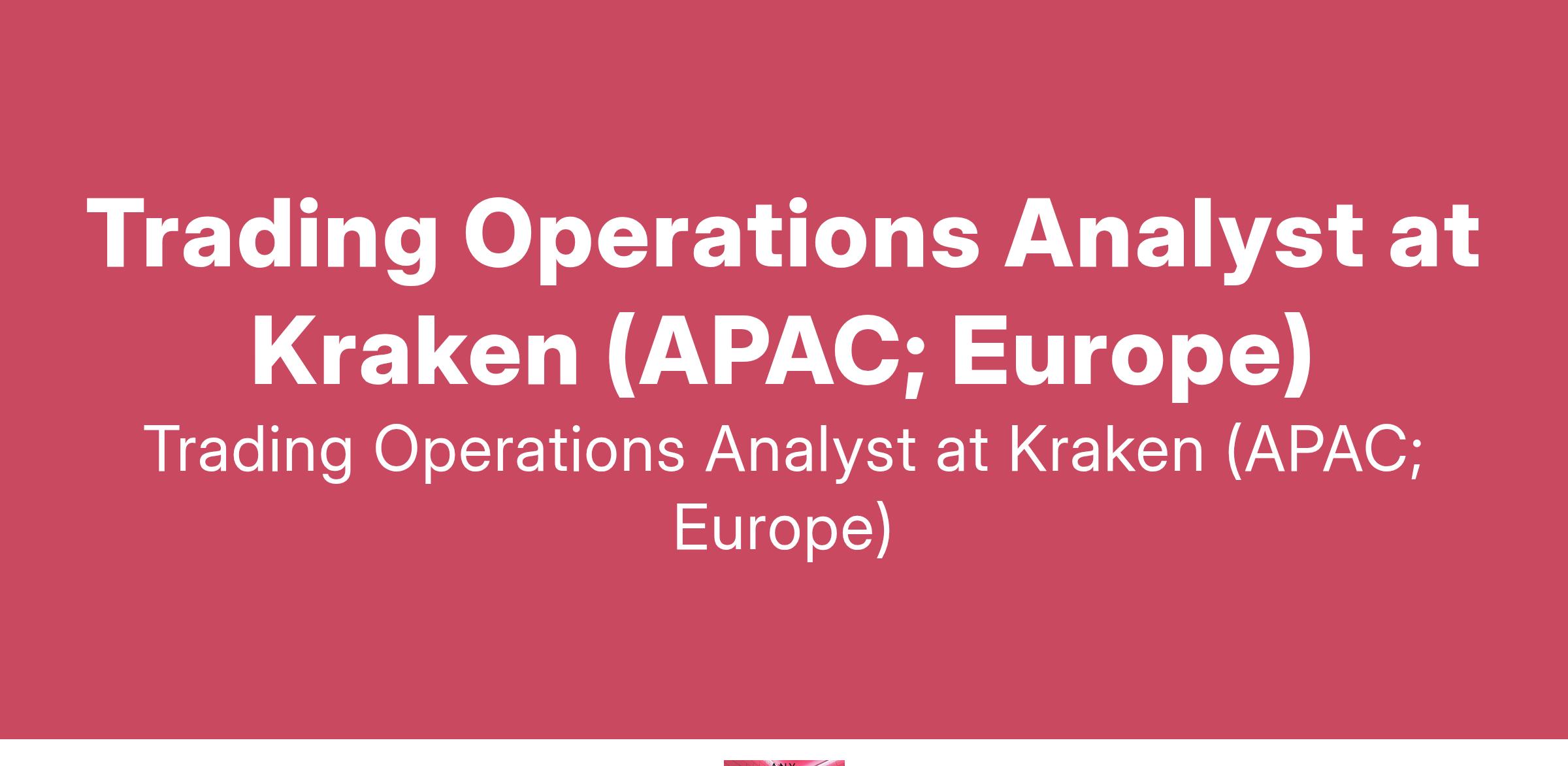 Trading Operations Analyst at Kraken (APAC; Europe)