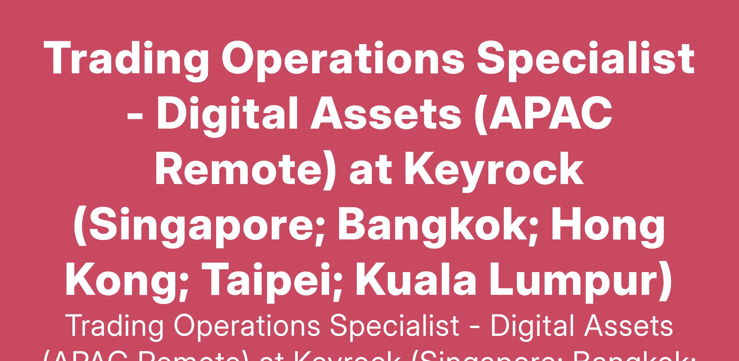 Trading Operations Specialist - Digital Assets (APAC Remote) at Keyrock (Singapore; Bangkok; Hong Kong; Taipei; Kuala Lumpur)