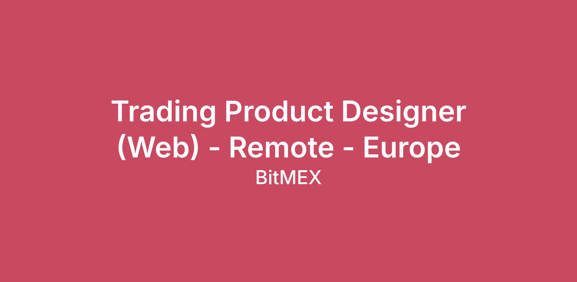 This is an opportunity to join a fast-growing team to develop and manage the overall user experience for our hero product, the BitMEX trading platform. As a Product Designer, your first key task is to elevate the web experience for our traders. You'll need to work closely with product managers, engineers and the commercial teams to roll out new features and improve the customer experience. Also, you'll have the opportunity to expand your role as we increase our product offerings.