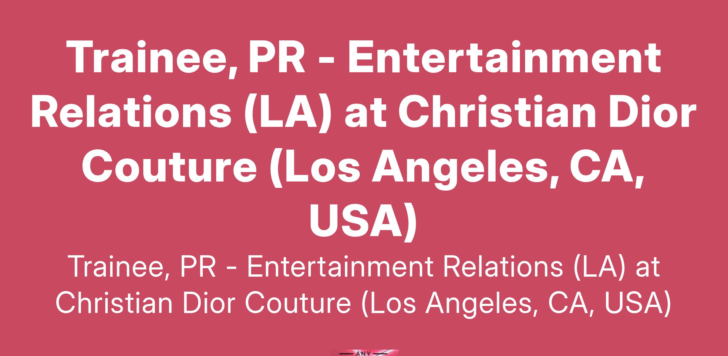Trainee, PR - Entertainment Relations (LA) at Christian Dior Couture (Los Angeles, CA, USA)