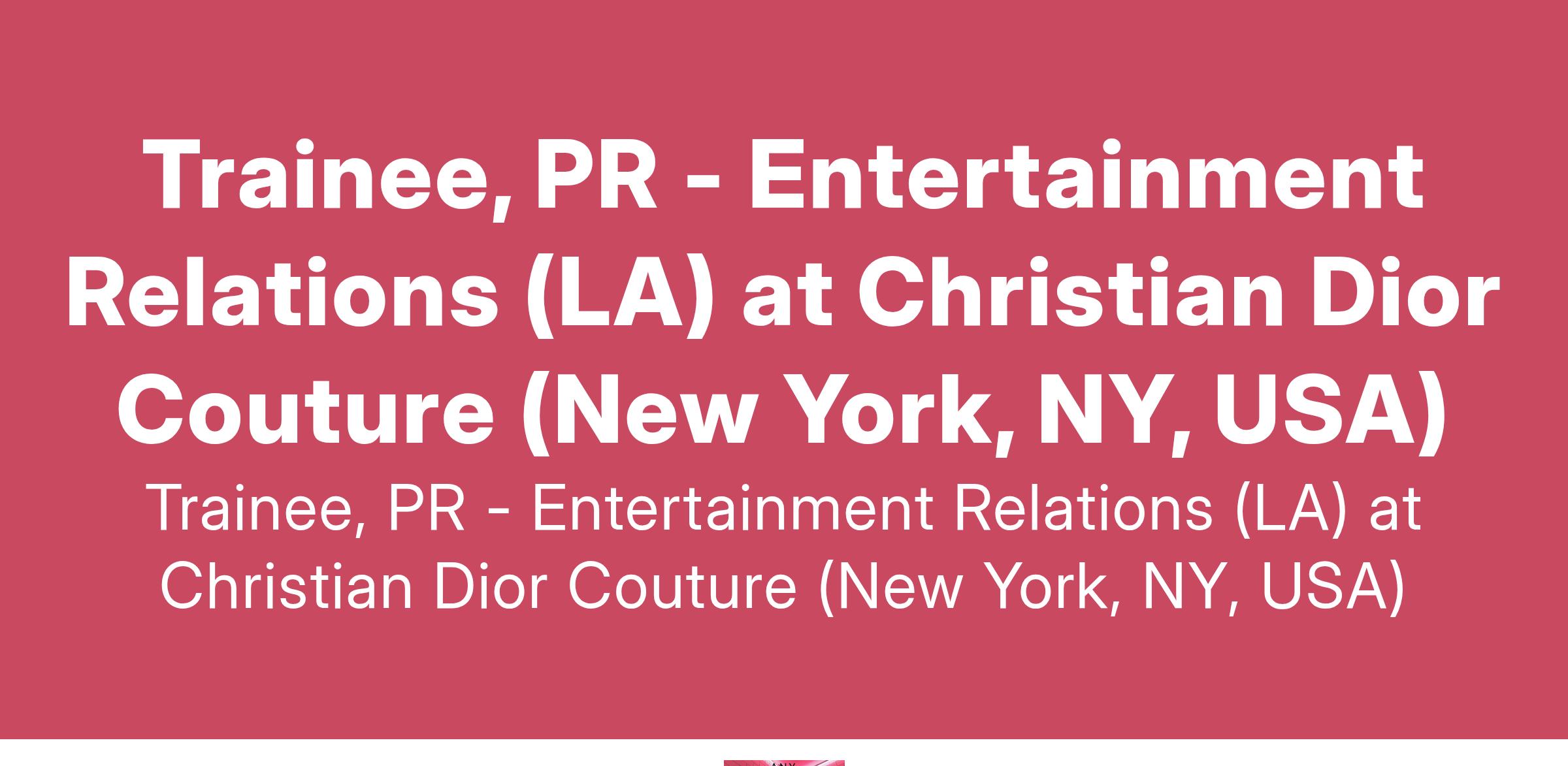 Trainee, PR - Entertainment Relations (LA) at Christian Dior Couture (New York, NY, USA)