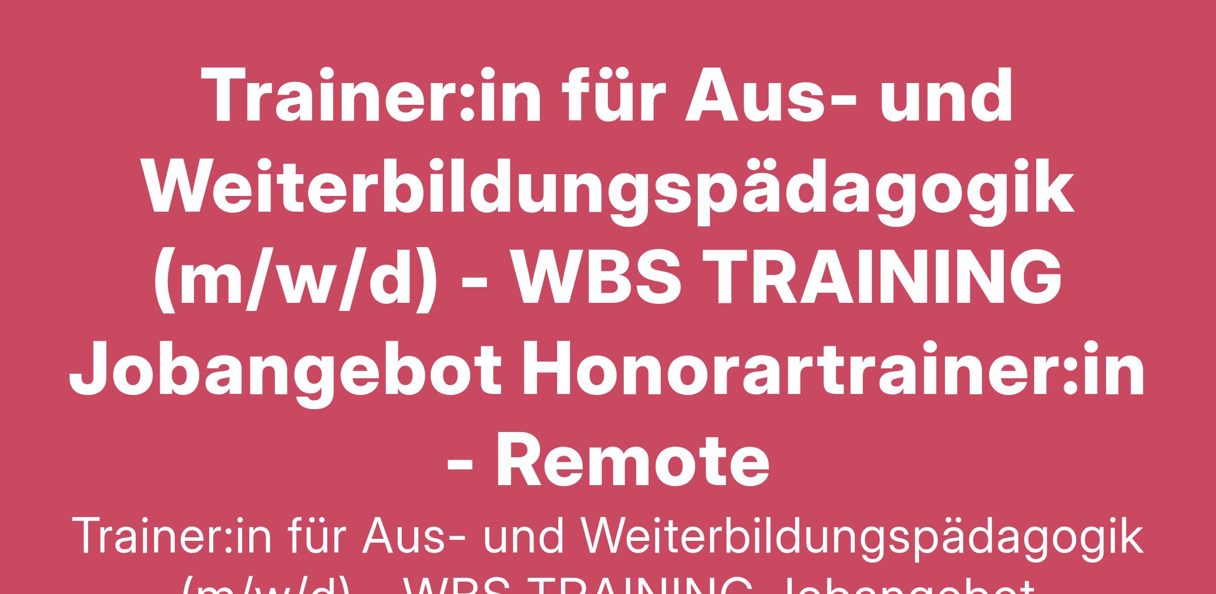 Als Honorartrainer:in der WBS TRAINING vertrittst du dein Fachgebiet mit Leidenschaft und Weitblick. In deiner Rolle als Trainer:in steht das Ziel der Kompetenzentwicklung der Kursteilnehmenden im Vordergrund. Du verstehst dich in deiner Unterrichtsgestaltung sowohl als Inputgeber:in als auch als Unterstützung in der Rolle einer Lernbegleiter:in Lernen 4.0!