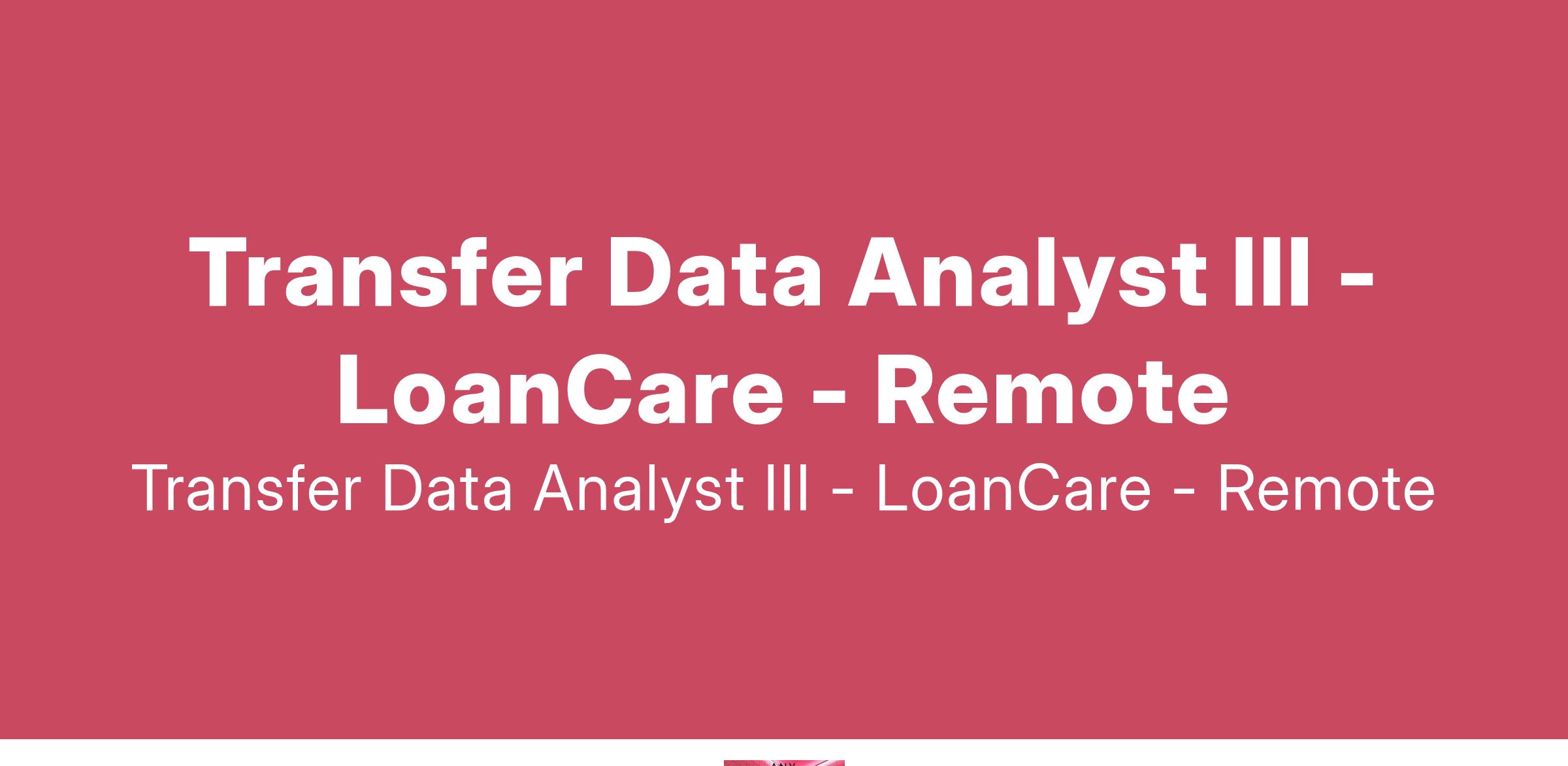 We are actively seeking to fill the role of Transfer Data Analyst III. Our ideal candidate enjoys working with clients, both internal and external, eager to learn and maximize results, is detail oriented and driven to meet tight deadlines in a fast-paced environment. Background in the mortgage or real estate industry is a plus. If this sounds like you, and you are ready for a career and not just your next job, apply today!