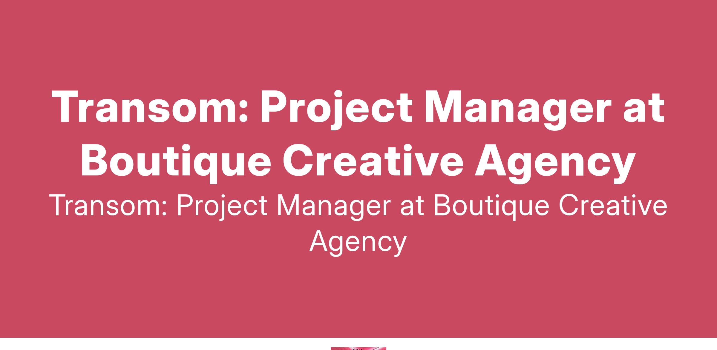 Transom is seeking a dynamic and experienced Project Manager to oversee the successful delivery of creative projects and support services. This role is integral to maintaining our high standards of client satisfaction, team efficiency, and project excellence. The ideal candidate will be fluent in creative agency disciplines, including branding, website design and development, and related services. They will excel at managing scoped projects, support workflows, and client communication, while driving insights into efficiency and profitability to continuously improve agency operations.