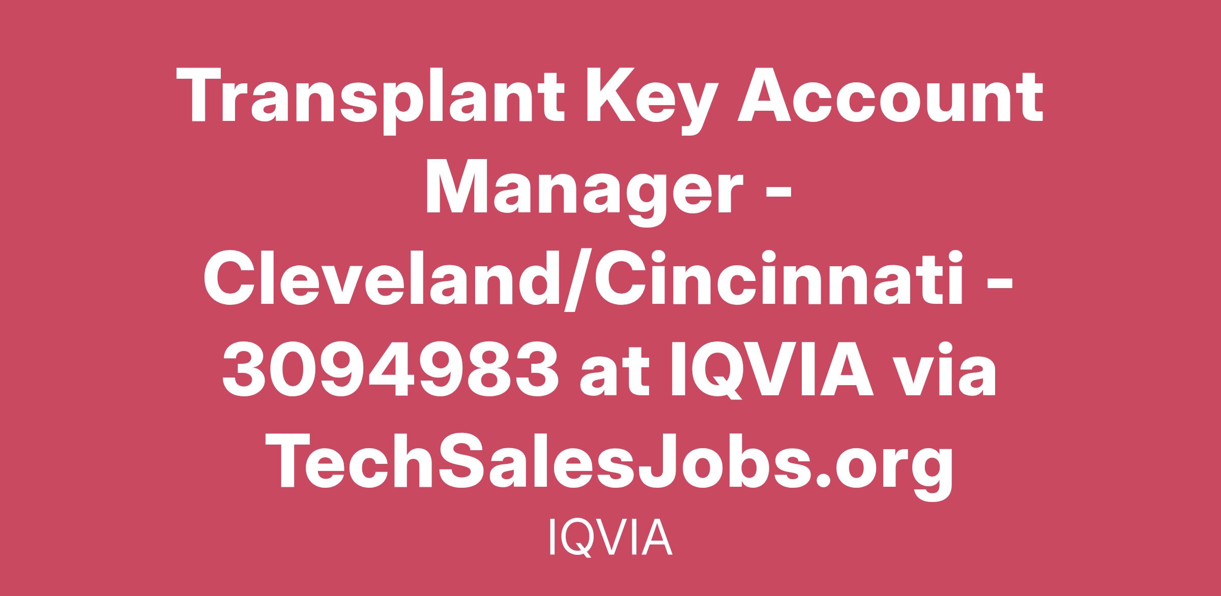Transplant Key Account Manager - Cleveland/Cincinnati - 3094983 at IQVIA via TechSalesJobs.org