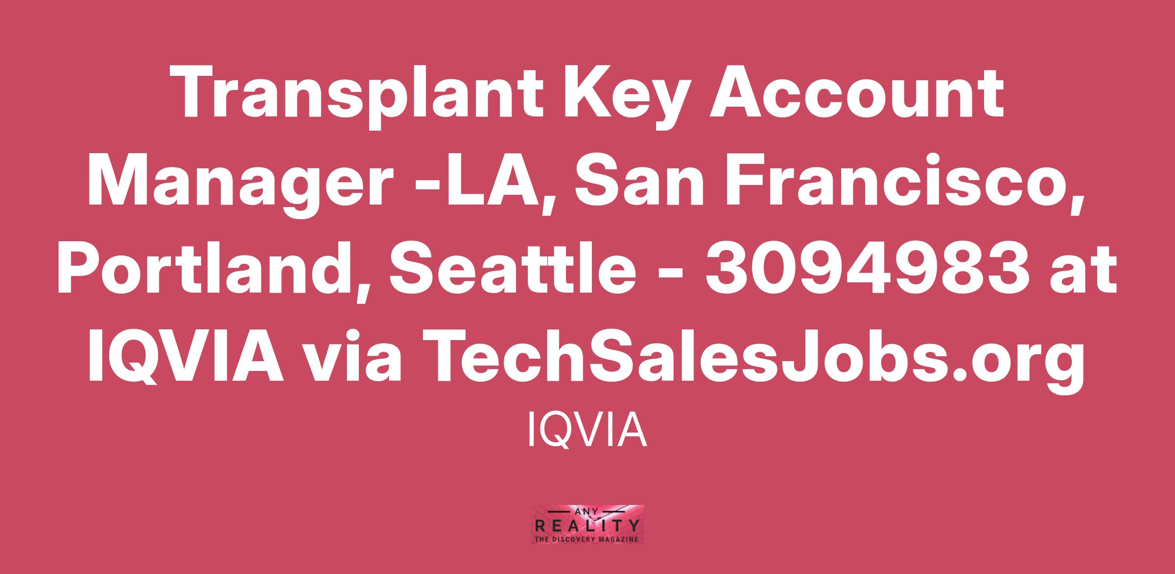 This is an exciting opportunity to join IQVIA as a Transplant Oncology/Hematology Key Account Manager to drive sales for a new and exciting startup company in the Transplant Oncology/Hematology market.
