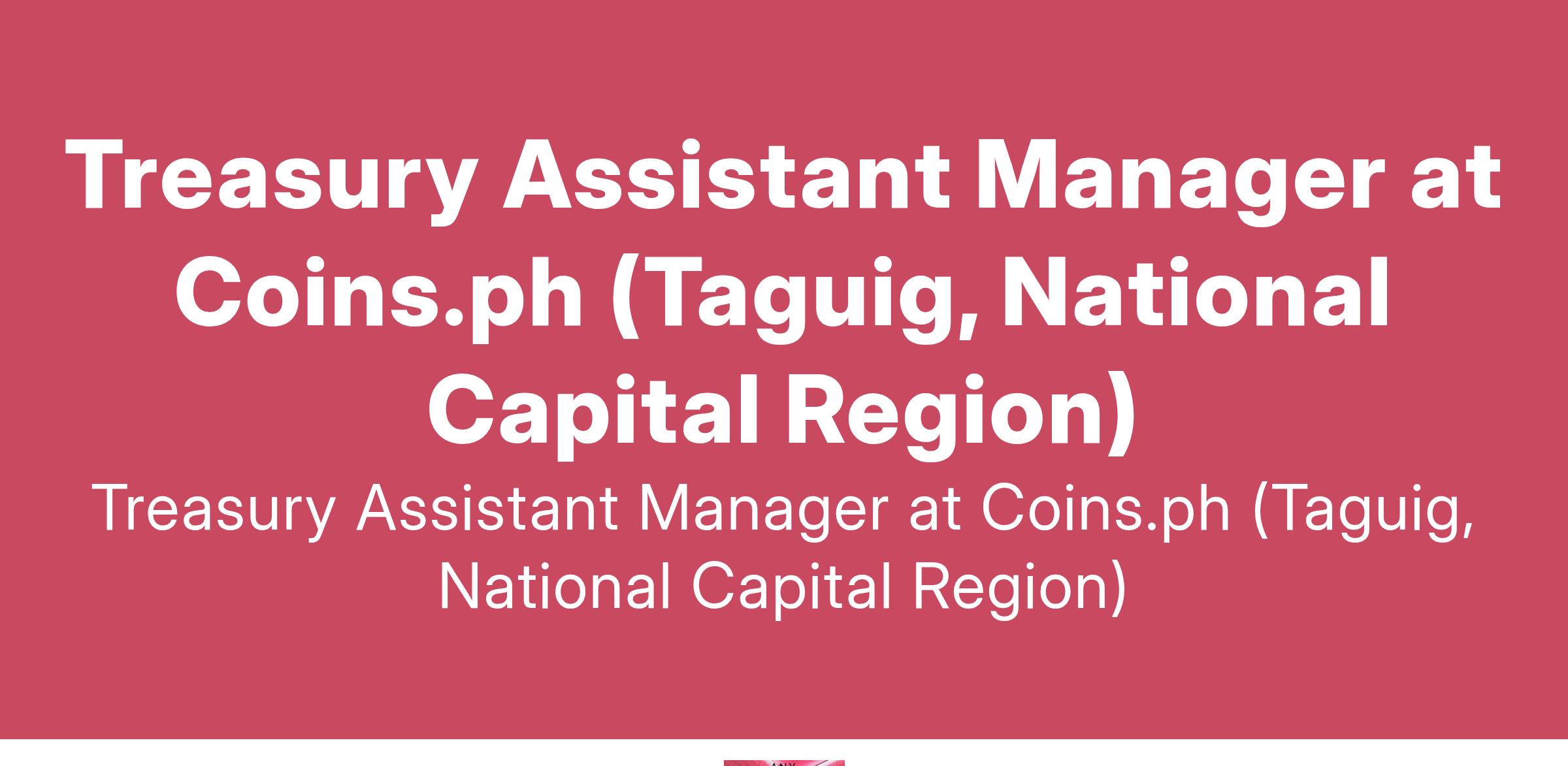Treasury Assistant Manager at Coins.ph (Taguig, National Capital Region)