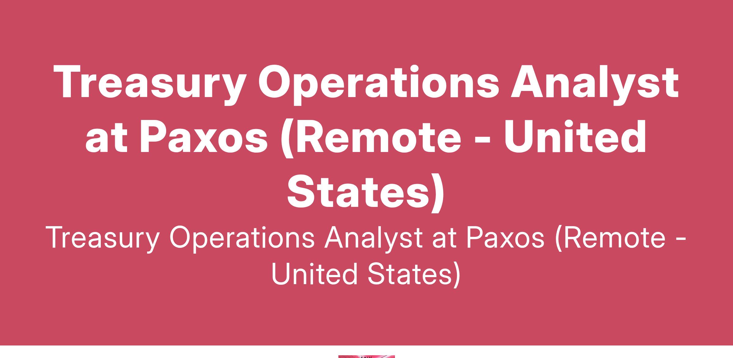 Treasury Operations Analyst at Paxos (Remote - United States)