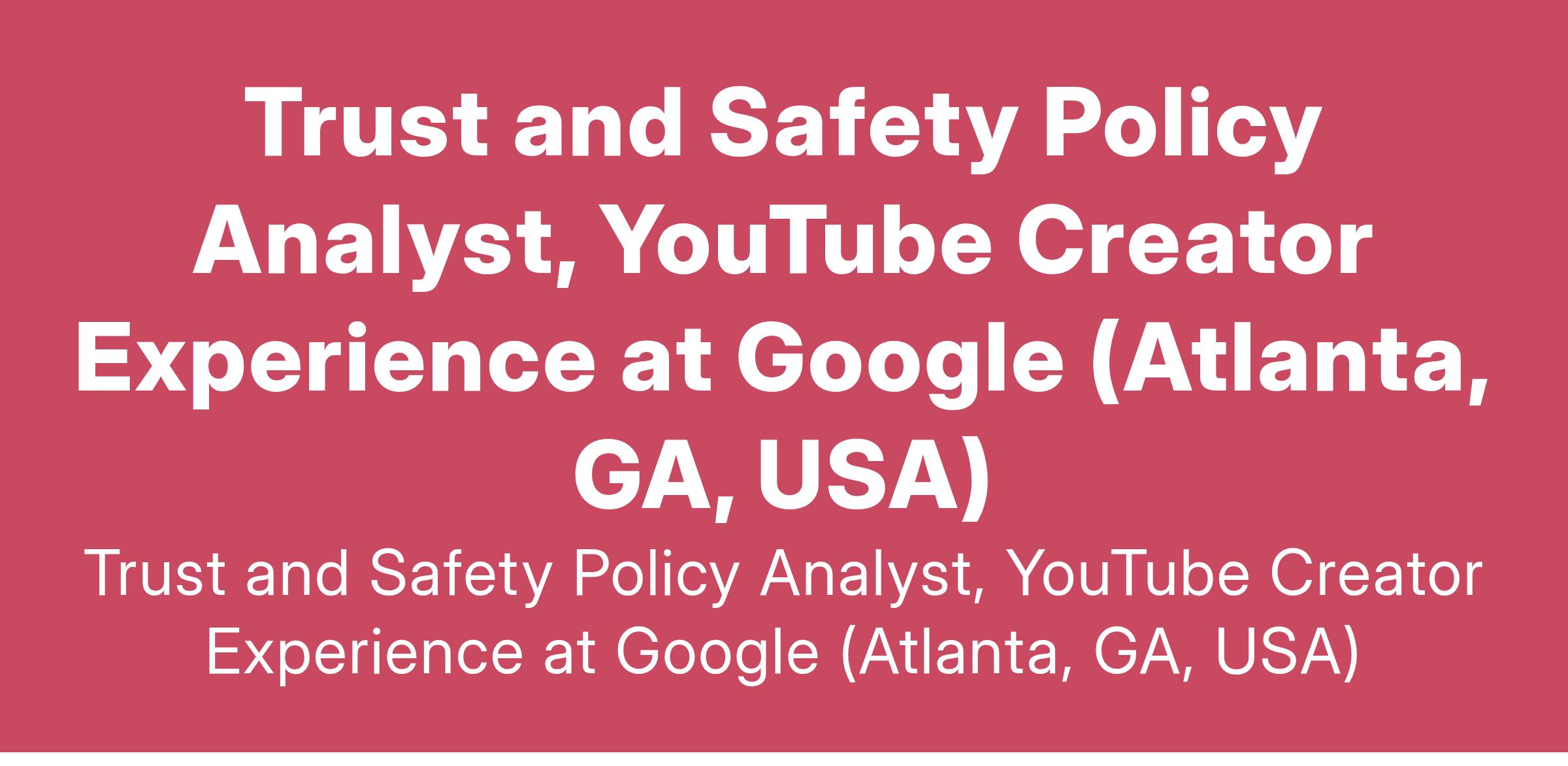 Trust and Safety Policy Analyst, YouTube Creator Experience at Google (Atlanta, GA, USA)