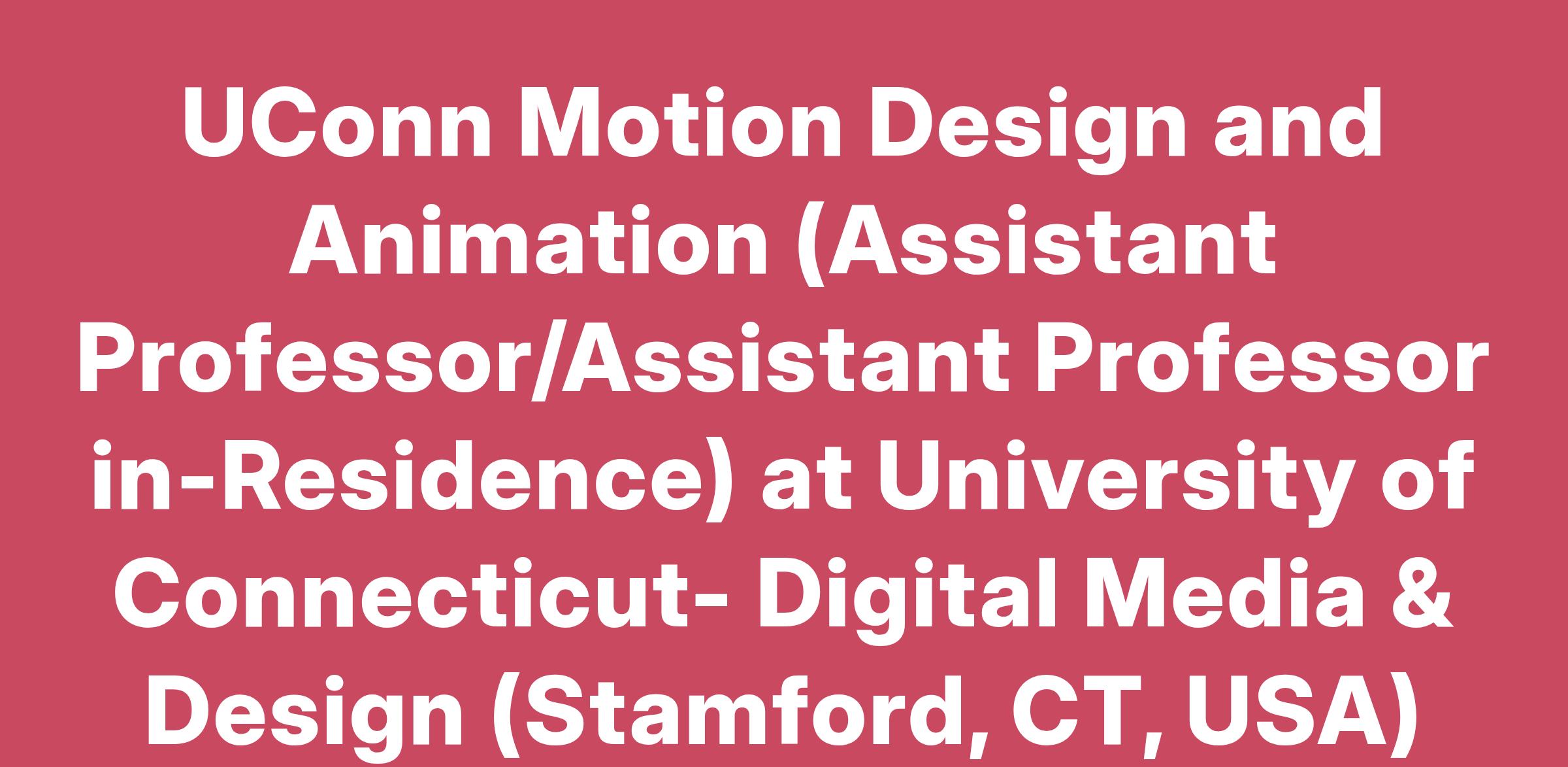 UConn Motion Design and Animation (Assistant Professor/Assistant Professor in-Residence) at University of Connecticut- Digital Media & Design (Stamford, CT, USA)