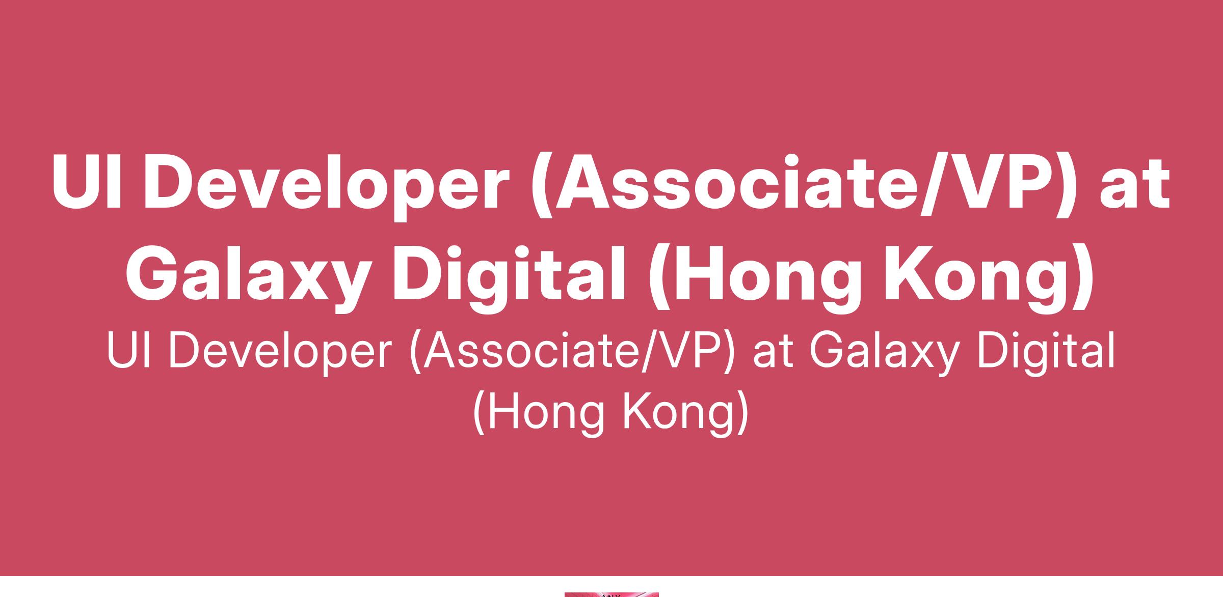 UI Developer (Associate/VP) at Galaxy Digital (Hong Kong)