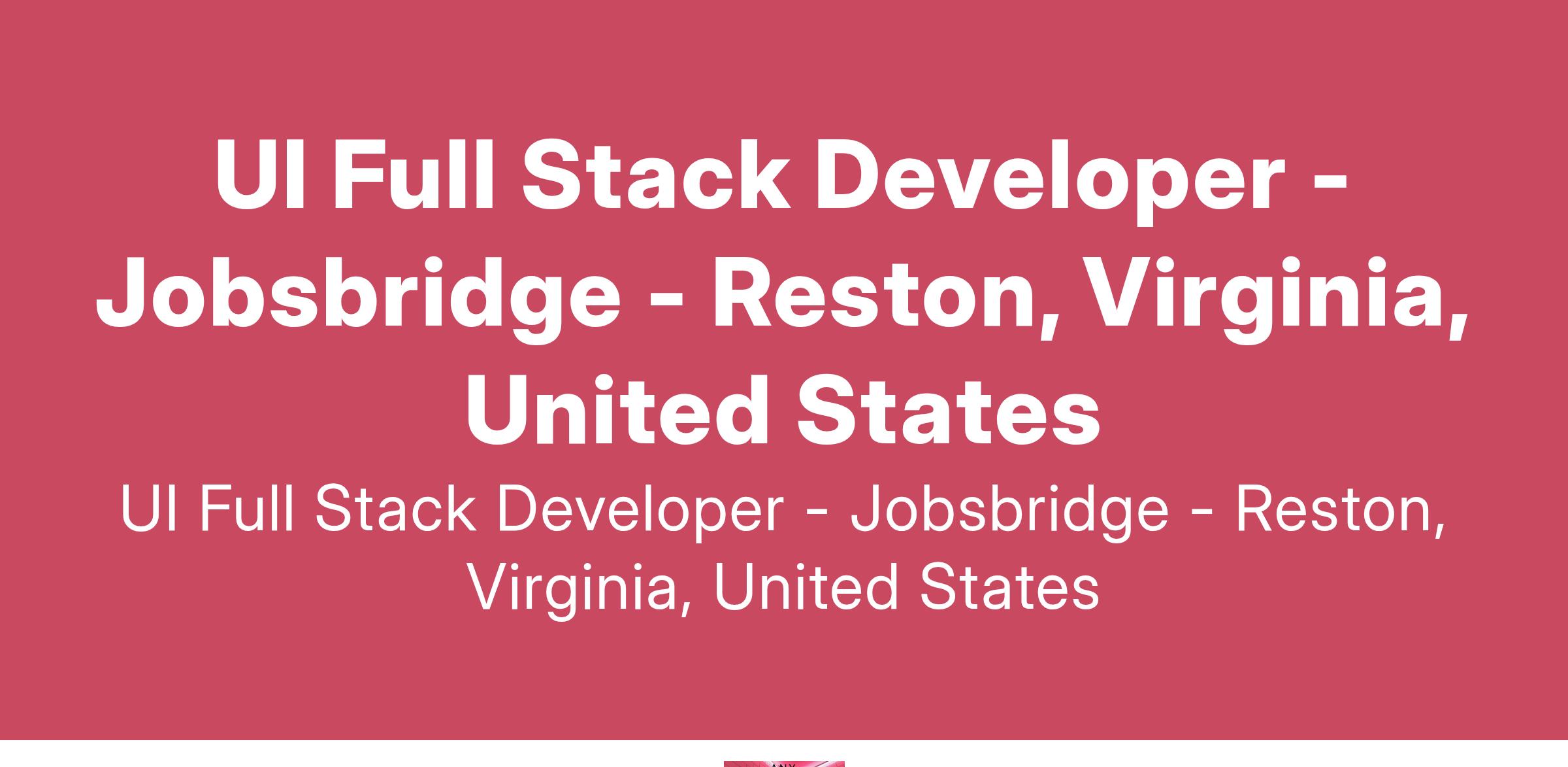 UI Full Stack Developer - Jobsbridge - Reston, Virginia, United States
