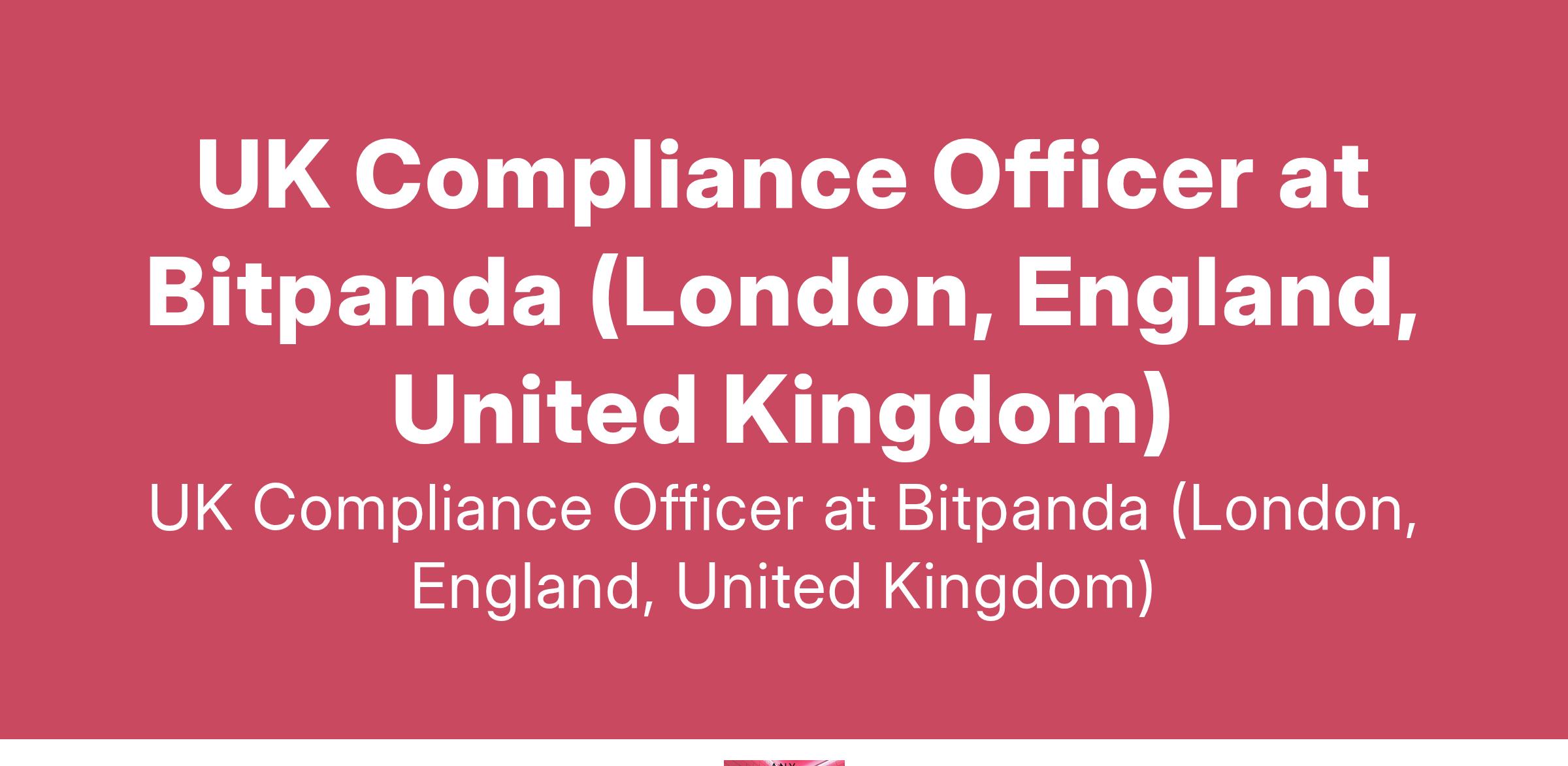 UK Compliance Officer at Bitpanda (London, England, United Kingdom)