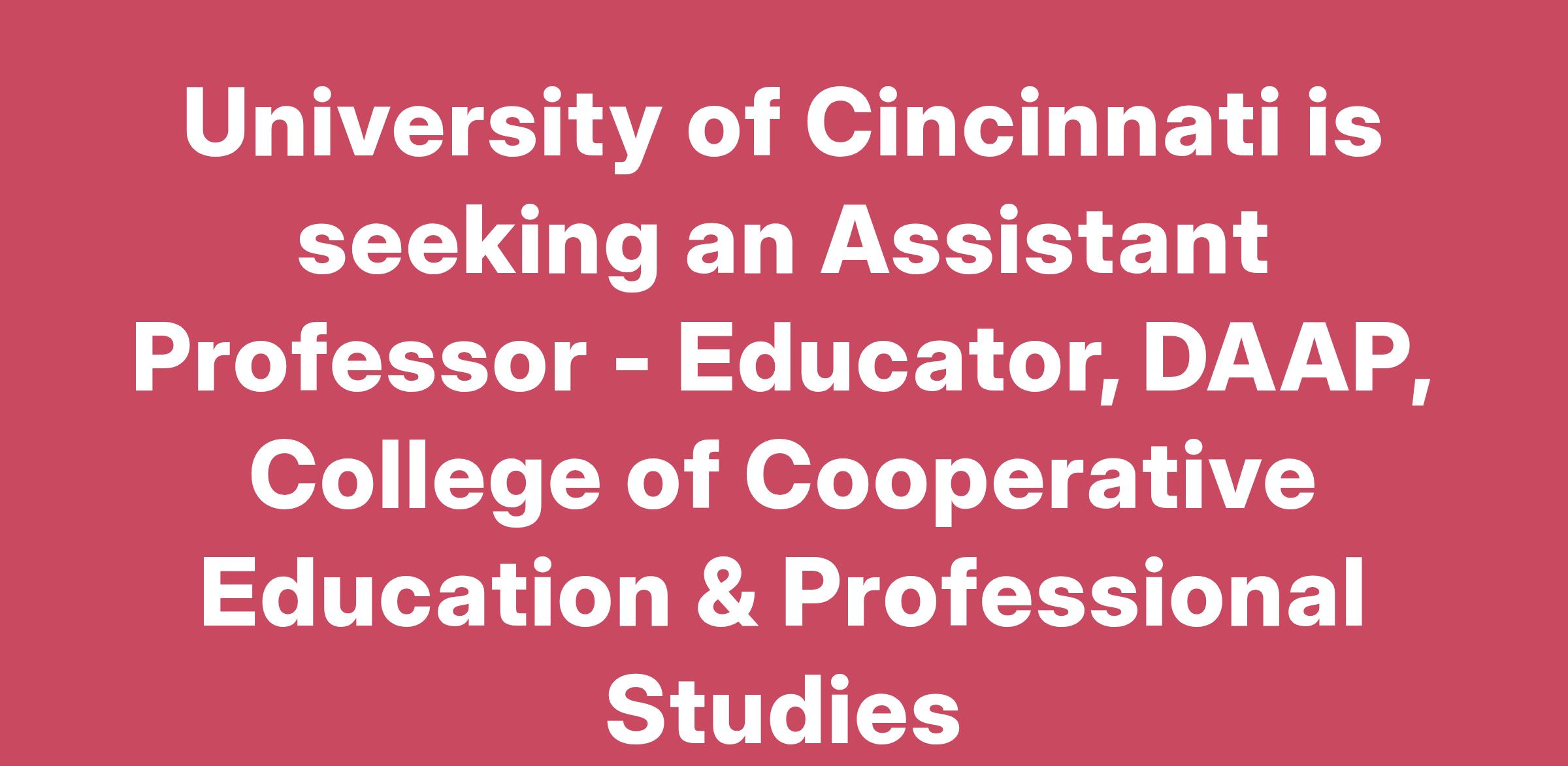 University of Cincinnati is seeking an Assistant Professor - Educator, DAAP, College of Cooperative Education & Professional Studies