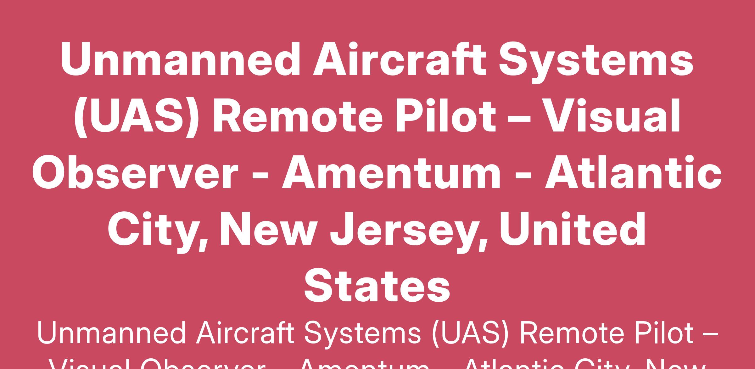 Unmanned Aircraft Systems (UAS) Remote Pilot – Visual Observer - Amentum - Atlantic City, New Jersey, United States