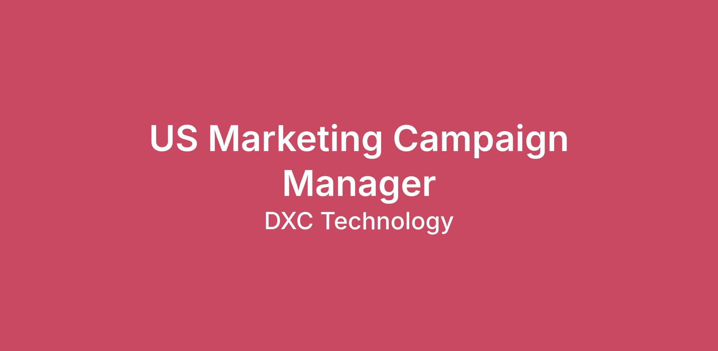 Job Description:The Marketing Campaign Manager translates defined marketing strategy into action by designing and delivering impactful marketing programs across Offerings, Partnerships and Industries. This role is focused on execution, driving measurable ROI through customer-relevant, multi-channel campaigns. The Campaign Manager ensures campaigns are designed and delivered with precision and optimized for business outcomes.Key ResponsibilitiesDesign, plan, orchestrate, and execute end-to-end demand generation marketing campaigns across all channels.Collaborate with cross-functional teams, vendors, and Marketing and Communications leadership as well as business and cross-functional stakeholders to ensure alignment with business priorities.Drive measurable campaign ROI through lead generation, conversions, and revenue contribution.Use Data and Insights team to track and analyze key performance metrics (e.g., lead generation, conversion rates, attendance, engagement, database health) to optimize marketing efforts and demonstrate ROI.Coordinate project timelines, deliverables, budgets and stakeholder communication.Test, learn, and continuously improve campaign approaches.Maintain campaign portfolios, dashboards, briefs, and performance reports.Partner with sales enablement to ensure generated leads move from marketing into sales successfully.Qualifications & Experience5+ years experience in marketing and campaingsExperience in marketing with a strong focus on campaign execution; preferably in the technology services sector.Background in marketing management, coordination, or digital marketing roles.Proven portfolio of successful campaigns with measurable results.Strong working knowledge of modern marketing tools and platforms (automation, CRM, analytics).Project management certification or digital marketing certifications preferred.Strong ability to collaborate with stakeholders and vendors in a fast-paced environment.Experience communicating and presenting to various levels across the organization.Ideal Candidate ProfileFast-paced, action-oriented decision-maker.Thrives in delivering campaigns under tight deadlines.Positive attitude, team-oriented, energetic, and optimistic.Proactive and detail-oriented, with the ability to multitask and deal with uncertainty.Energized by creating customer experiences that drive engagement.Skilled in clear, direct communication through updates, reports, and dashboards.Comfortable managing multiple priorities and balancing urgency with accuracy.Strong communication and organization abilities.Analytical thinking and attention to detail.Works with project team to consistently deliver clear, effective solutions on campaigns.Compensation at DXC is influenced by an array of factors, including but not limited to the experience, job-related knowledge, skills, competencies, as well as contract-specific affordability and organizational requirements. A reasonable estimate of the current compensation range for this position is $95,900 - $178,100.Full-time hires are eligible to participate in the DXC benefit program. DXC offers a comprehensive, flexible, and competitive benefits program which includes, but is not limited to, health, dental, and vision insurance coverage; employee wellness; life and disability insurance; a retirement savings plan, paid holidays, paid time off.At DXC Technology, we believe strong connections and community are key to our success. Our work model prioritizes in-person collaboration while offering flexibility to support wellbeing, productivity, individual work styles, and life circumstances. We’re committed to fostering an inclusive environment where everyone can thrive.If you are an applicant from the United States, Guam, or Puerto RicoDXC Technology Company (DXC) is an Equal Opportunity employer. All qualified candidates will receive consideration for employment without regard to race, color, religion, sex, sexual orientation, gender identity, national origin, age, disability, pregnancy, veteran status, genetic information, citizenship status, or any other basis prohibited by law. View postings below.We participate in E-Verify. In addition to the posters already identified, DXC provides access to prospective employees for the Federal Minimum Wage Poster, Federal Polygraph Protection Act Poster as well as any state or locality specific applicant posters. To access the postings in the link below, select your state to view all applicable federal, state and locality postings. Postings are available in English, and in Spanish, where required. View postings below.Postings LinkDisability AccommodationsIf you are an individual with a disability, a disabled veteran, or a wounded warrior and you are unable or limited in your ability to access or use this site as a result of your disability, you may request a reasonable accommodation by contacting us via email.Please note: DXC will respond only to requests for accommodations due to a disability.Recruitment fraud is a scheme in which fictitious job opportunities are offered to job seekers typically through online services, such as false websites, or through unsolicited emails claiming to be from the company. These emails may request recipients to provide personal information or to make payments as part of their illegitimate recruiting process. DXC does not make offers of employment via social media networks and DXC never asks for any money or payments from applicants at any point in the recruitment process, nor ask a job seeker to purchase IT or other equipment on our behalf. More information on employment scams is available here.