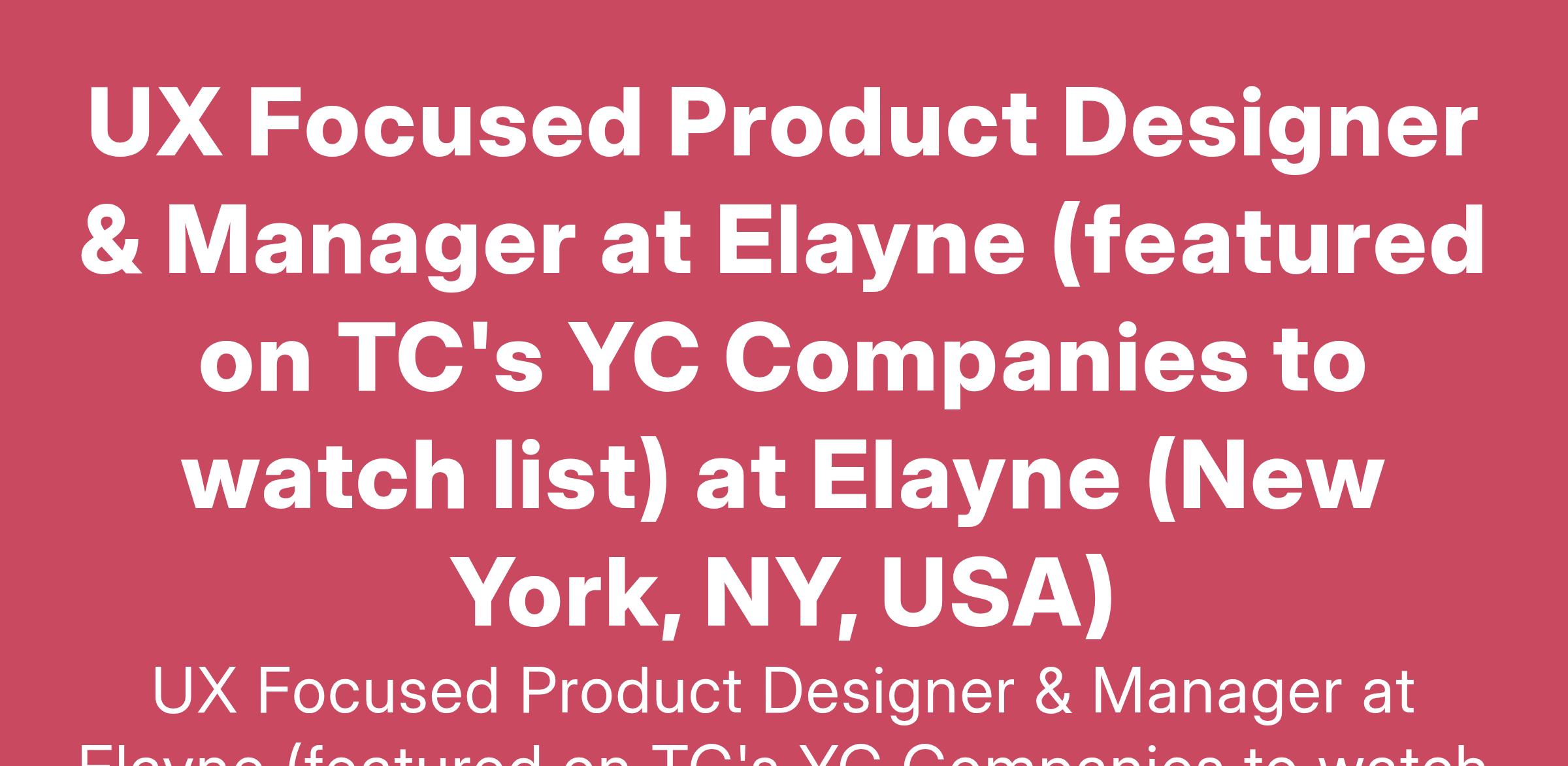 UX Focused Product Designer & Manager at Elayne (featured on TC's YC Companies to watch list) at Elayne (New York, NY, USA)