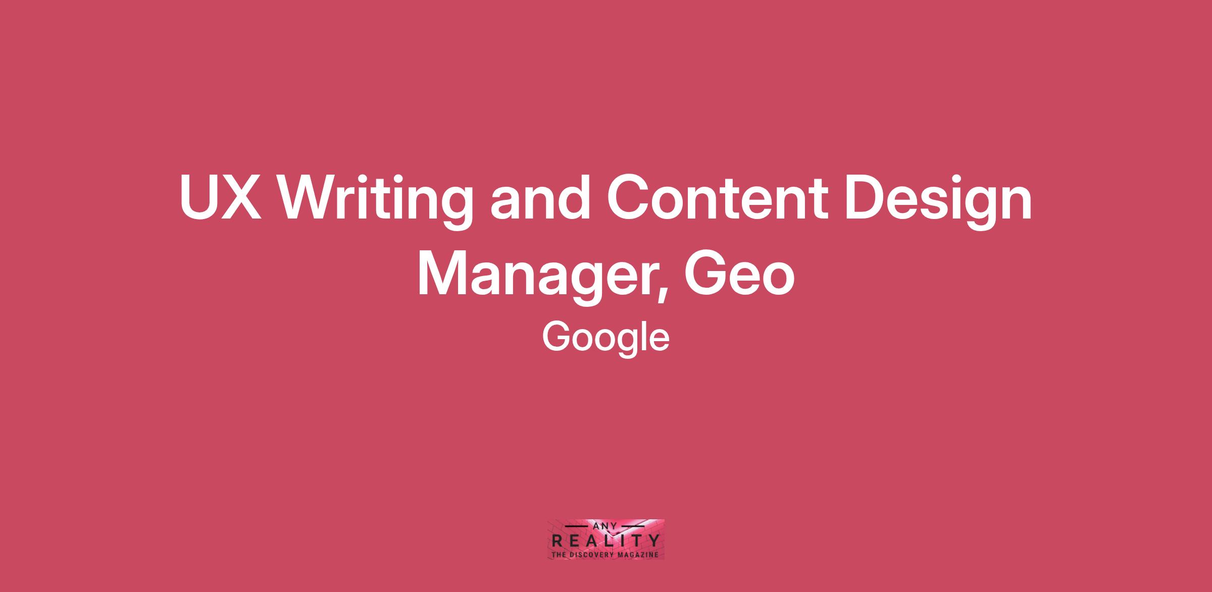 \As a UX Writing and Content Design Manager for Geo, you will lead a team in helping build some Google products, including Maps, Waze, and more.