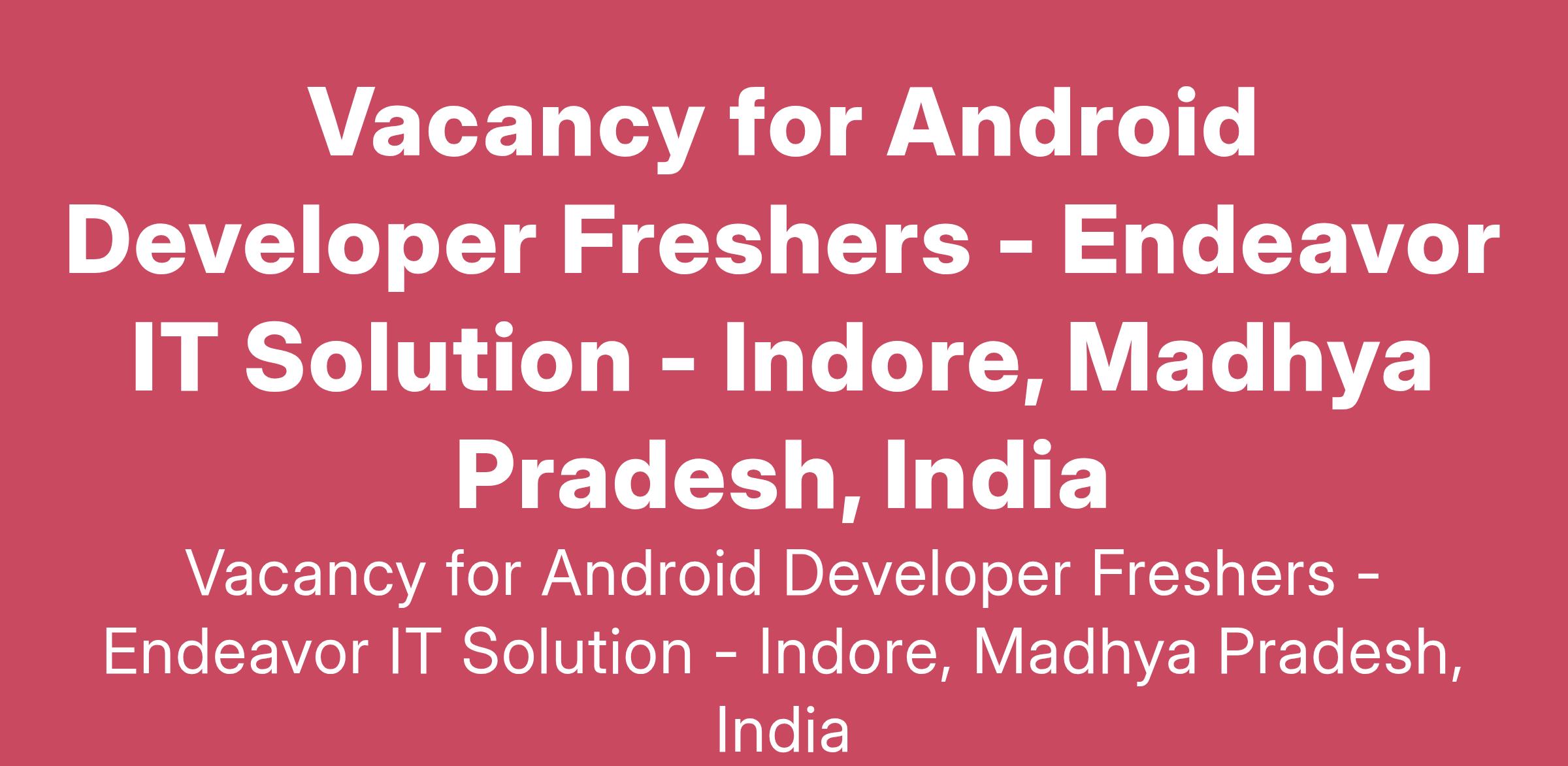 IT Solution is looking out for an Android Developer who can work full time with us.