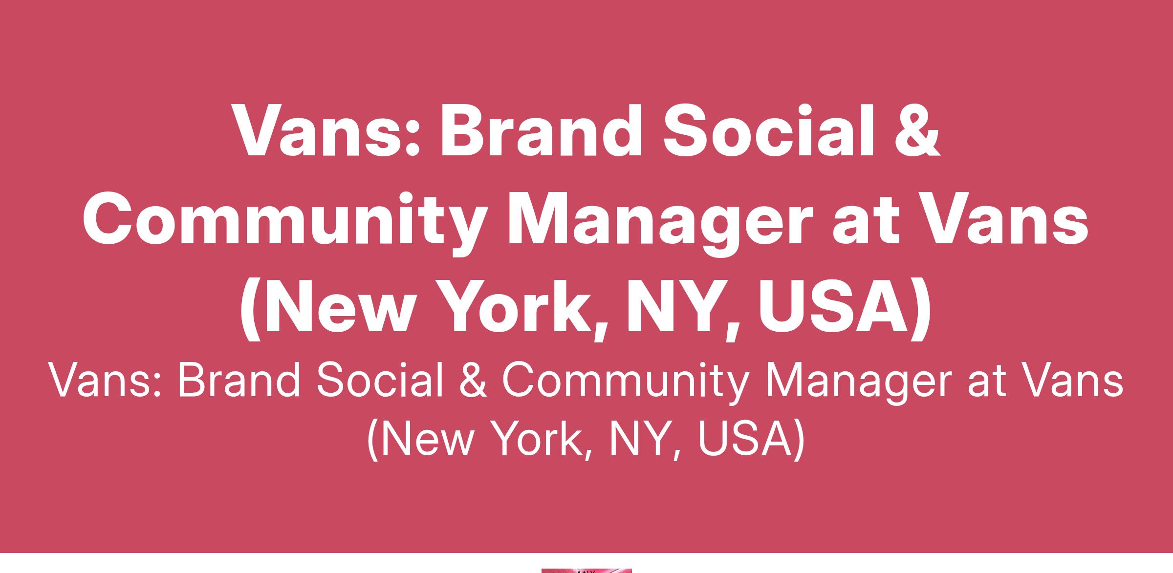 Vans: Brand Social & Community Manager at Vans (New York, NY, USA)
