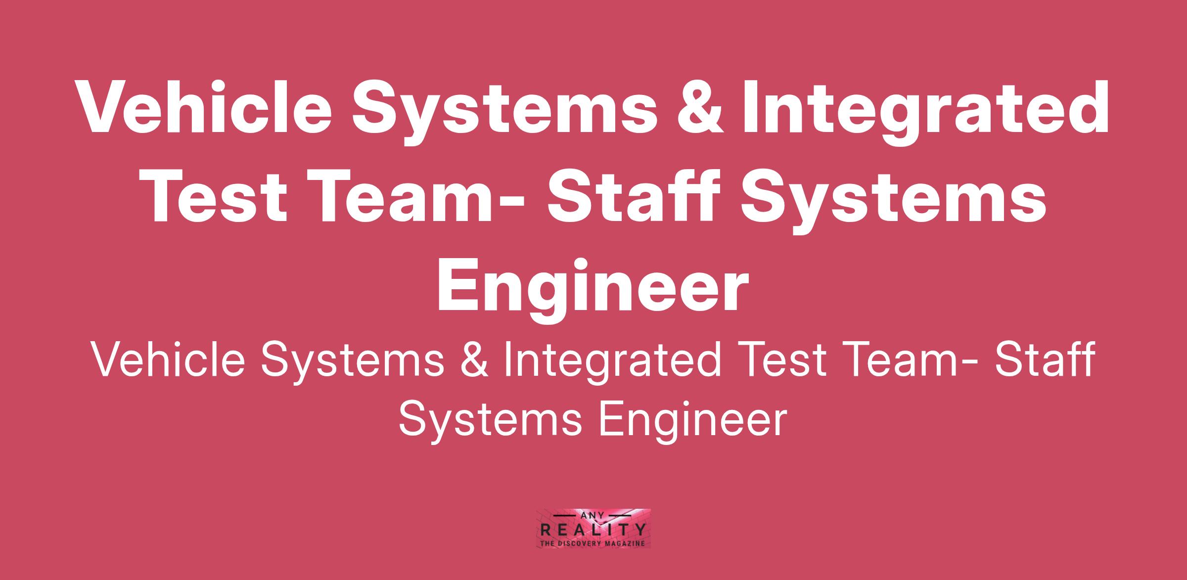 Vehicle Systems & Integrated Test Team- Staff Systems Engineer