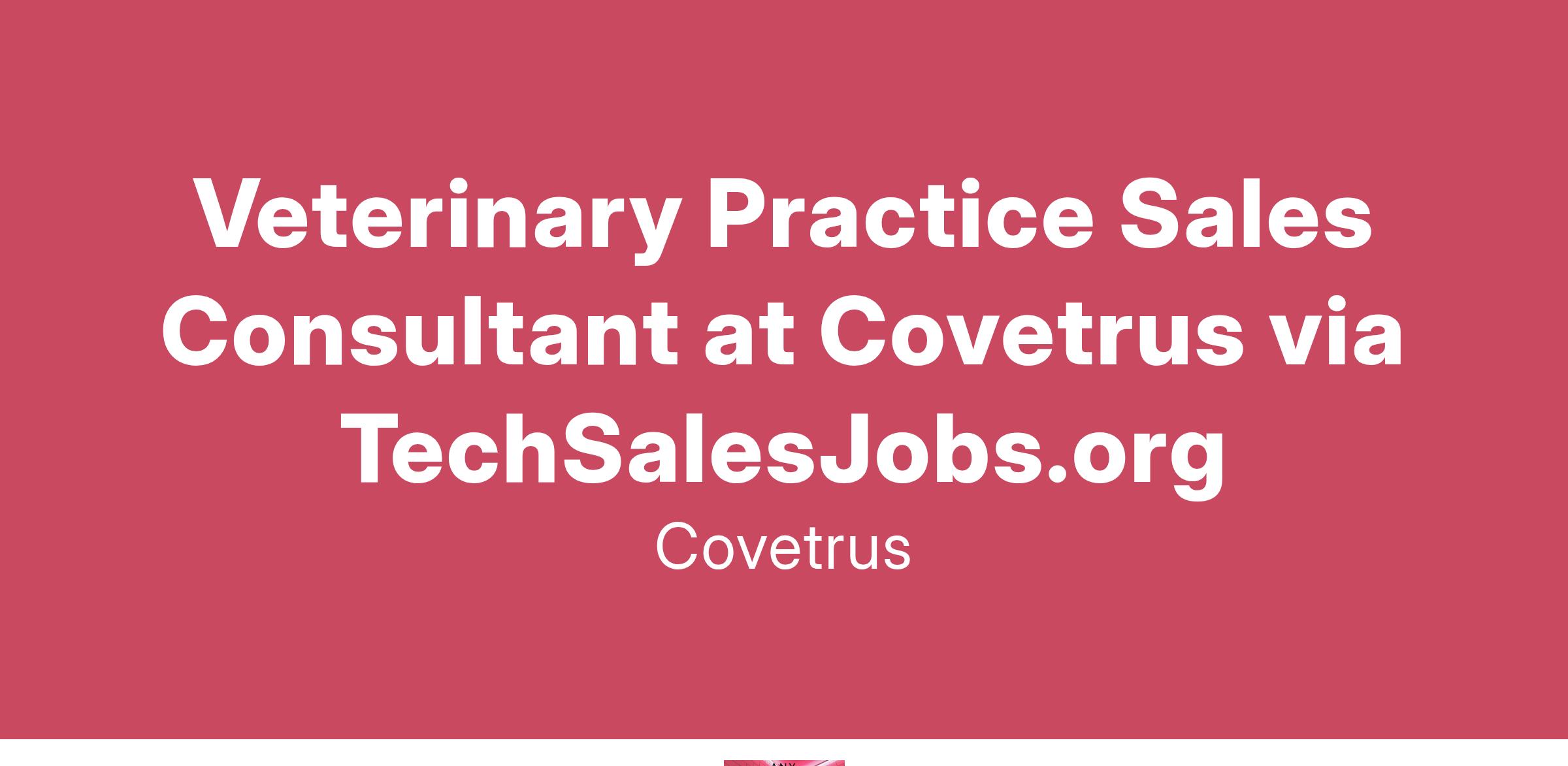 This is veterinary sales; you should be comfortable with going into veterinary clinic and hospital environments.