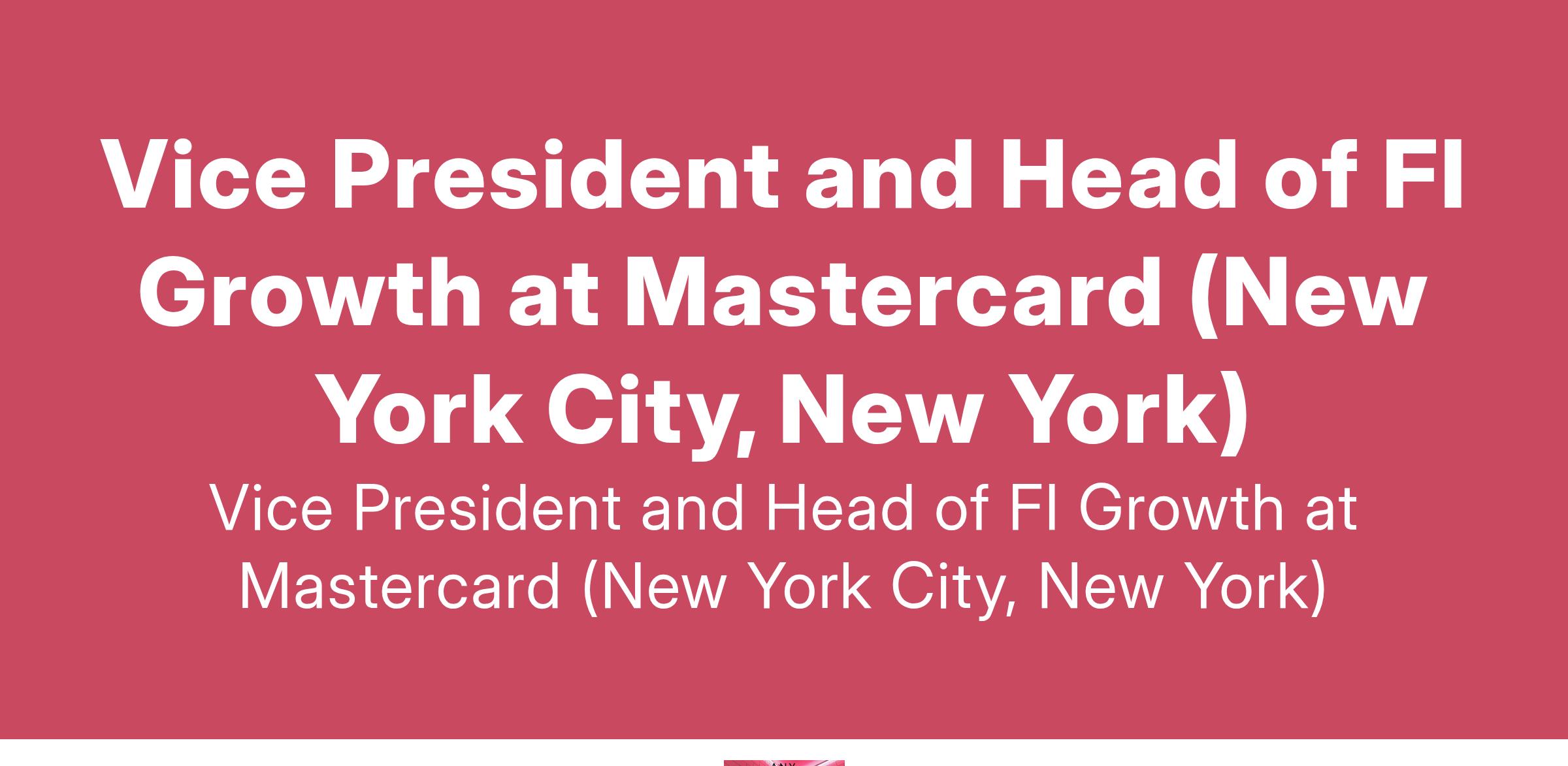 Vice President and Head of FI Growth at Mastercard (New York City, New York)