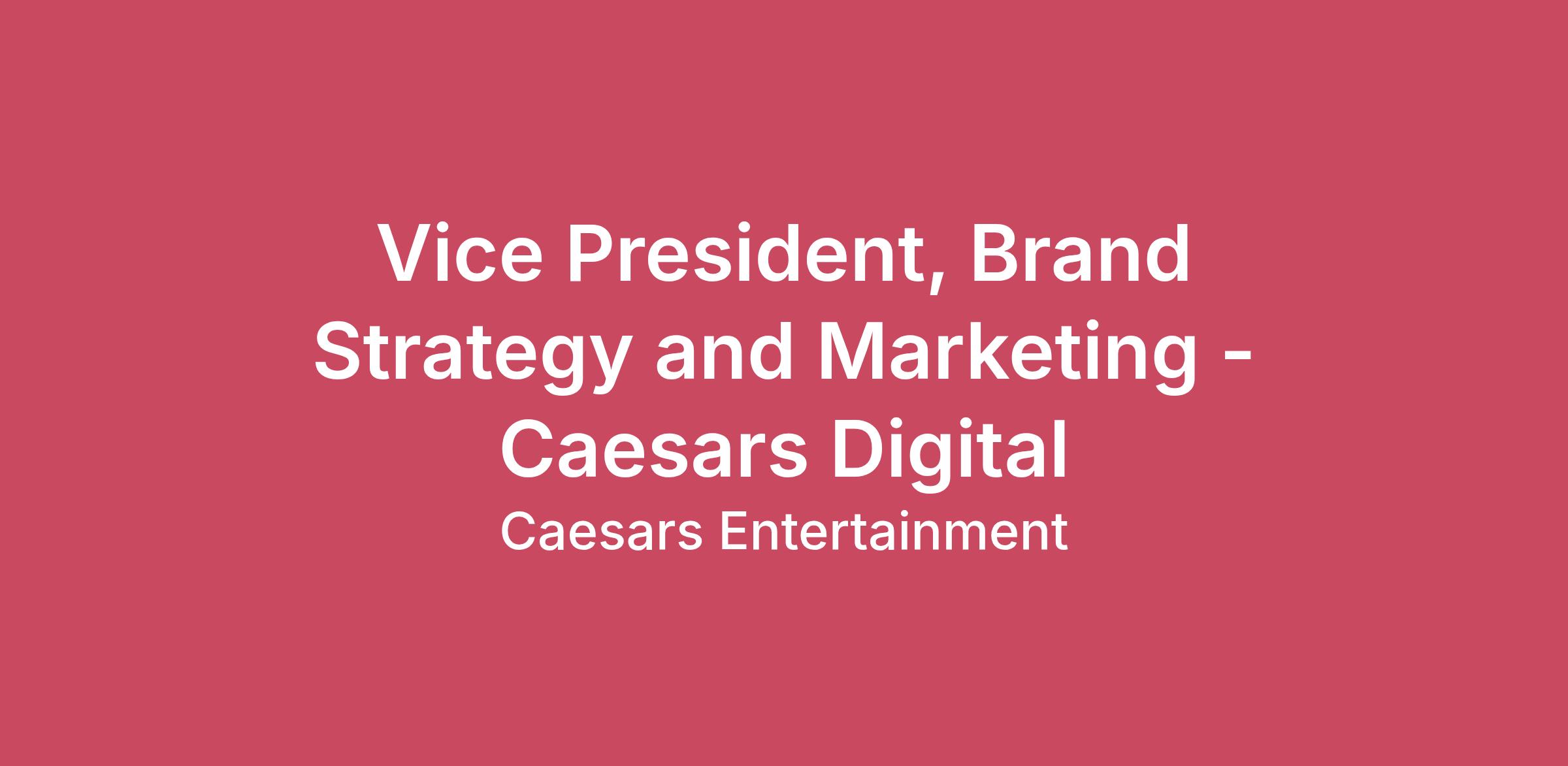 Caesars Entertainment is the global leader in gaming and hospitality, home to legendary destinations including Caesars Palace®, Harrah’s®, Horseshoe®, the all‑new Caesars Republic Lake Tahoe®, and the soon‑to‑open Vanderpump Hotel®. We also power some of the industry’s most dynamic digital experiences including Caesars Palace Online Casino®, Caesars Sportsbook®. These brands are tied together through Caesars Rewards®, the most celebrated loyalty program in gaming.After years of significant investment transforming both our retail and digital properties, we’re entering a bold new era, one where our brands become stronger, clearer, more beloved, and more culturally resonant than ever.We’re looking for a visionary VP of Brand Strategy & Marketing to steward a portfolio of digital brands, elevate their meaning, and create work that connects with our customers, shapes culture, and drives measurable, business impact.If you thrive at the intersection of creativity, brand strategy, and commercial performance-this is your stage. At Caesars Digital, We Don’t Just Play the Game — We Set the Standard. As a proud part of Caesars Entertainment, the world’s premier gaming company with more than 80 years of sports betting leadership, Caesars Digital is Blazing The Trail in digital innovation, customer experience and industry excellence. We believe every Team Member should be treated like royalty because We Are All Caesars. This guiding principle fuels our commitment to delivering legendary service and creating unforgettable experiences for our customers. From cutting-edge digital platforms including Caesars Sportsbook, Caesars Palace Online, Horseshoe Online Casino and Caesars Racebook, to the continuing expansion of our retail footprint and our William Hill legacy, along with powerhouse partnerships across sports and entertainment, we’re building something extraordinary. And we want you to be part of it. Ready to make your mark on the Empire? Explore our open roles and discover how you can help shape the future of gaming. Join us. Blaze the Trail. Because at Caesars Digital, We Are All Caesars.