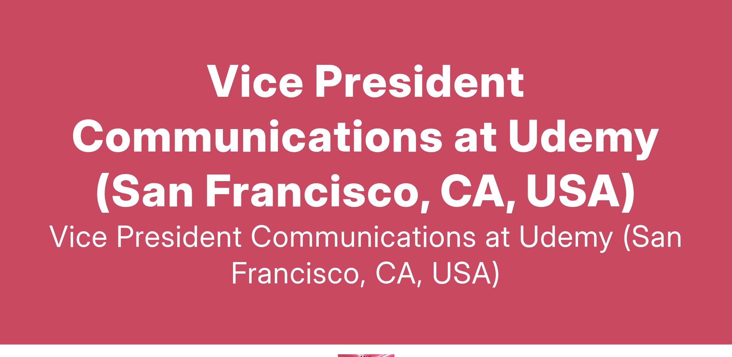 Vice President Communications at Udemy (San Francisco, CA, USA)