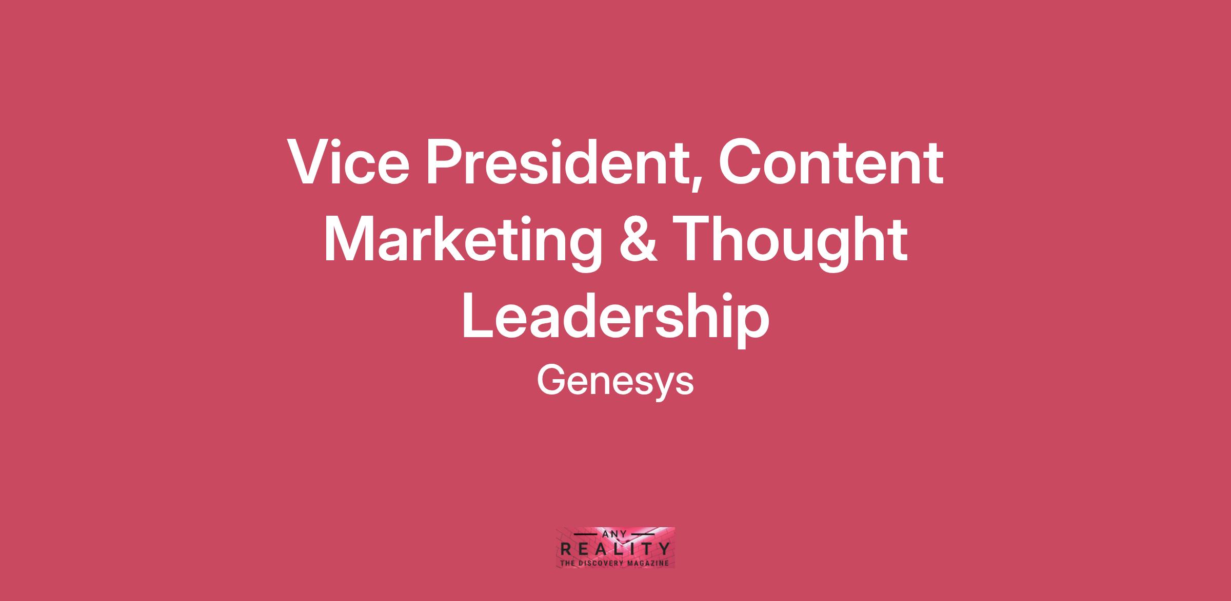 Genesys empowers organizations of all sizes to improve loyalty and business outcomes by creating the best experiences for their customers and employees. Through Genesys Cloud, the AI-powered Experience Orchestration platform, organizations can accelerate growth by delivering empathetic, personalized experiences at scale to drive customer loyalty, workforce engagement, efficiency and operational improvements.We employ more than 6,000 people across the globe who embrace empathy and cultivate collaboration to succeed. And, while we offer great benefits and perks like larger tech companies, our employees have the independence to make a larger impact on the company and take ownership of their work. Join the team and create the future of customer experience together.Business Title: VP, Content Marketing & Thought LeadershipReports to: SVP, Product MarketingLocation: US - RemoteVice President, Content Marketing & Thought LeadershipSummaryThis is a strategic and creative leadership opportunity to guide the global content strategy for Genesys, a recognized leader in AI-powered experience orchestration. As Vice President, Content Marketing & Thought Leadership, you will develop and scale a world-class content engine that drives our go-to-market success, strengthens brand authority, and inspires global audiences. You will lead a team of talented storytellers and strategists to produce compelling content across multiple formats, including thought leadership, research, web, campaigns, digital media, event, product launch and regional marketing efforts. At Genesys, we are transforming the customer experience landscape with empathy, innovation, and global impact. Joining our team means becoming part of a culture that values collaboration, creativity, and purposeful storytelling that moves markets.Key ResponsibilitiesLead global content strategy across the company and go-to-market functions, ensuring alignment with business goals and brand positioning.Oversee creation of original, high-value content including articles, reports, videos, long and short form content assets that inform and inspire our audiences, ensuring:Originality: Provide new insights, original research, or unique perspectives that go beyond generic information.Value: Offer content that helps the audience understand their own challenges and opportunities and provides concrete guidance or solutions.Credibility: Back up claims with strong research, data, and evidence.Consistency: Share valuable knowledge and insights consistently to build a reputation as a reliable and knowledgeable source.Authenticity: Maintain a strong, authentic voice and demonstrate a clear set of values.Champion thought leadership, helping position Genesys and its executives as trusted authorities through timely, research-backed insights and perspectives.Drive demand generation and customer engagement through content that fuels digital marketing, product launches, executive engagements, and flagship events.Maintain exceptional standards for originality, clarity, and authenticity in all content assets.Collaborate closely with cross-functional teams in Marketing, Product, Sales, and Executive Leadership to ensure a consistent brand voice and narrative.Apply data-driven insights to optimize content performance and continuously improve impact and reach.Coach and scale a high-performing global content team of writers, editors, strategists and leaders, fostering professional development while driving results.Minimum Requirements12+ years in content marketing, brand journalism, or editorial leadership, preferably in B2B technology or enterprise software.Proven success building and leading global content teams that deliver measurable business results.Demonstrated ability to align content strategies with business goals, including experience driving demand, building awareness and supporting customer engagement.Exceptional writing, storytelling, and editorial judgment, with a portfolio that showcases long-form and short-form content across multiple channels.In-depth understanding of digital content strategies and organic audience engagement. Excellent communication and collaboration skills, with experience influencing at the executive level.Strategic mindset with the ability to translate complex technology topics into clear and compelling narratives.Exemplifies integrity and collaborative leadership, consistently building trust and alignment across all levels of the organization.Creative problem solving and adaptability in dynamic, fast changing environments.Ability to thrive in a global, agile, and fast-paced environment.#LI-Remote#LI-CP1Compensation:This role has a market-competitive salary with an anticipated base compensation range listed below. Actual salaries will vary depending on a candidate’s experience, qualifications, skills, and location. This role might also be eligible for a commission or performance-based bonus opportunities. $203,600.00 - $378,000.00Benefits:Medical, Dental, and Vision Insurance. Telehealth coverageFlexible work schedules and work from home opportunitiesDevelopment and career growth opportunitiesOpen Time Off in addition to 10 paid holidays401(k) matching programAdoption AssistanceFertility treatmentsClick here to view a summary overview of our Benefits. If a Genesys employee referred you, please use the link they sent you to apply.About Genesys:Genesys® empowers more than 8,000 organizations worldwide to create the best customer and employee experiences. With agentic AI at its core, Genesys Cloud™ is the AI-Powered Experience Orchestration platform that connects people, systems, data and AI across the enterprise. As a result, organizations can drive customer loyalty, growth and retention while increasing operational efficiency and teamwork across human and AI workforces. To learn more, visit www.genesys.com.Reasonable Accommodations:If you require a reasonable accommodation to complete any part of the application process, or are limited in 