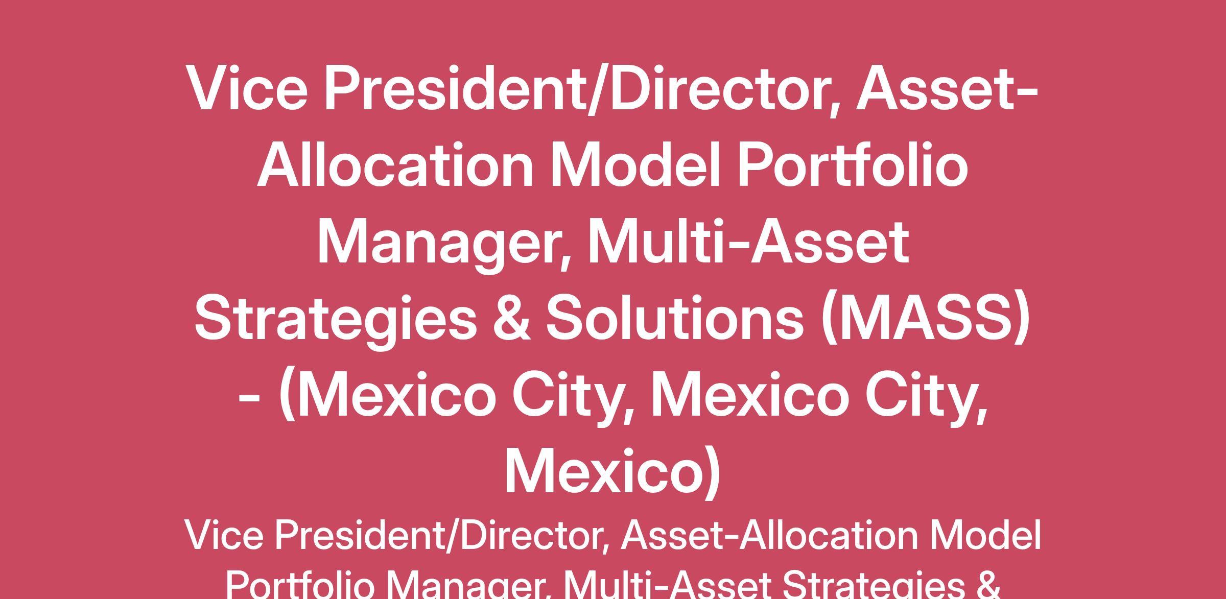 BlackRock is seeking an experienced multi-asset portfolio manager (“PM”) to join our MASS investment team in Mexico City, where they will be responsible for managing the Latin America models book. This book consists of multi-asset model portfolios customized and localized for institutional and wealth clients across Latin America, bringing together investment input from multiple global investment teams.