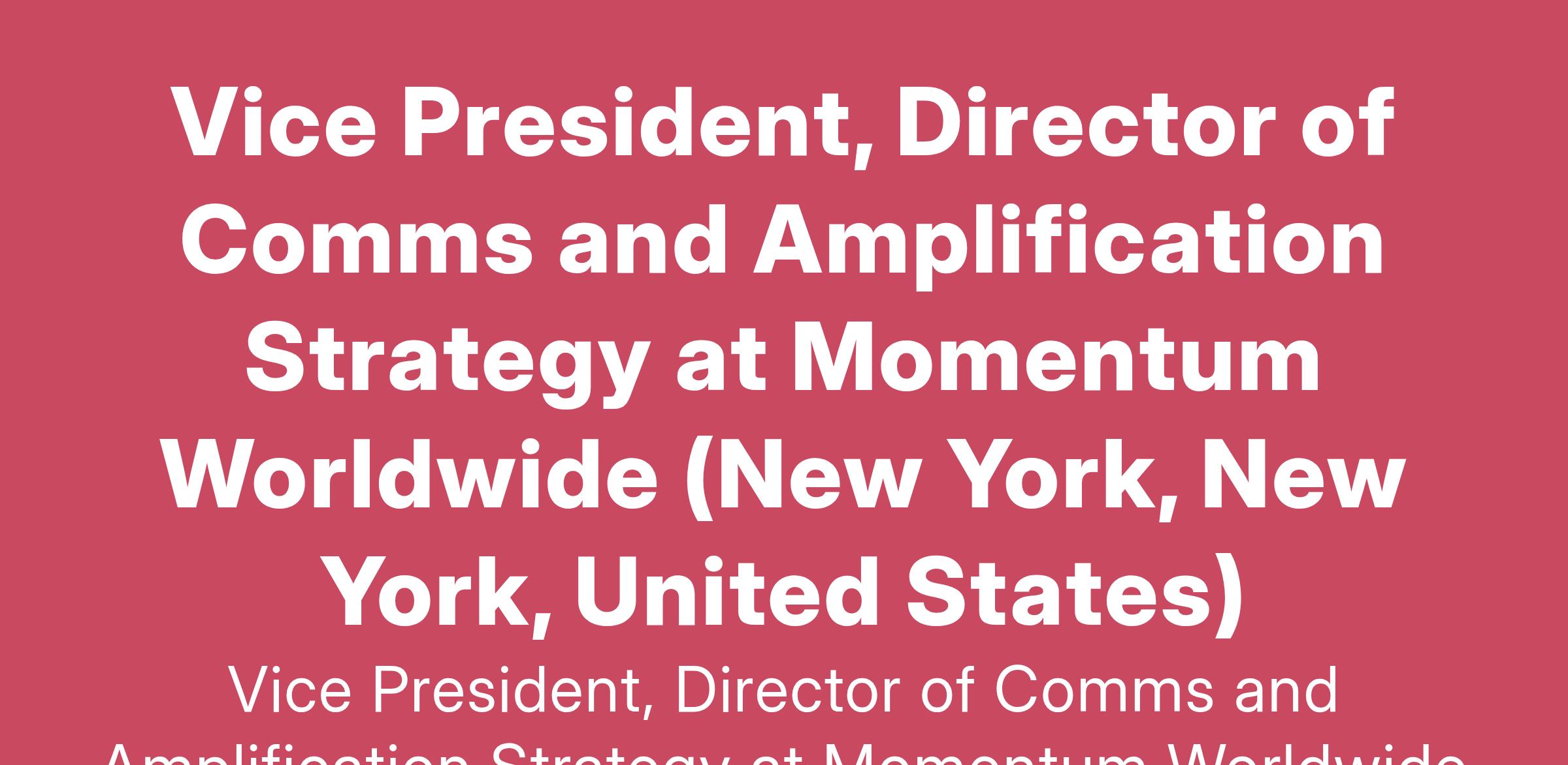 Vice President, Director of Comms and Amplification Strategy at Momentum Worldwide (New York, New York, United States)