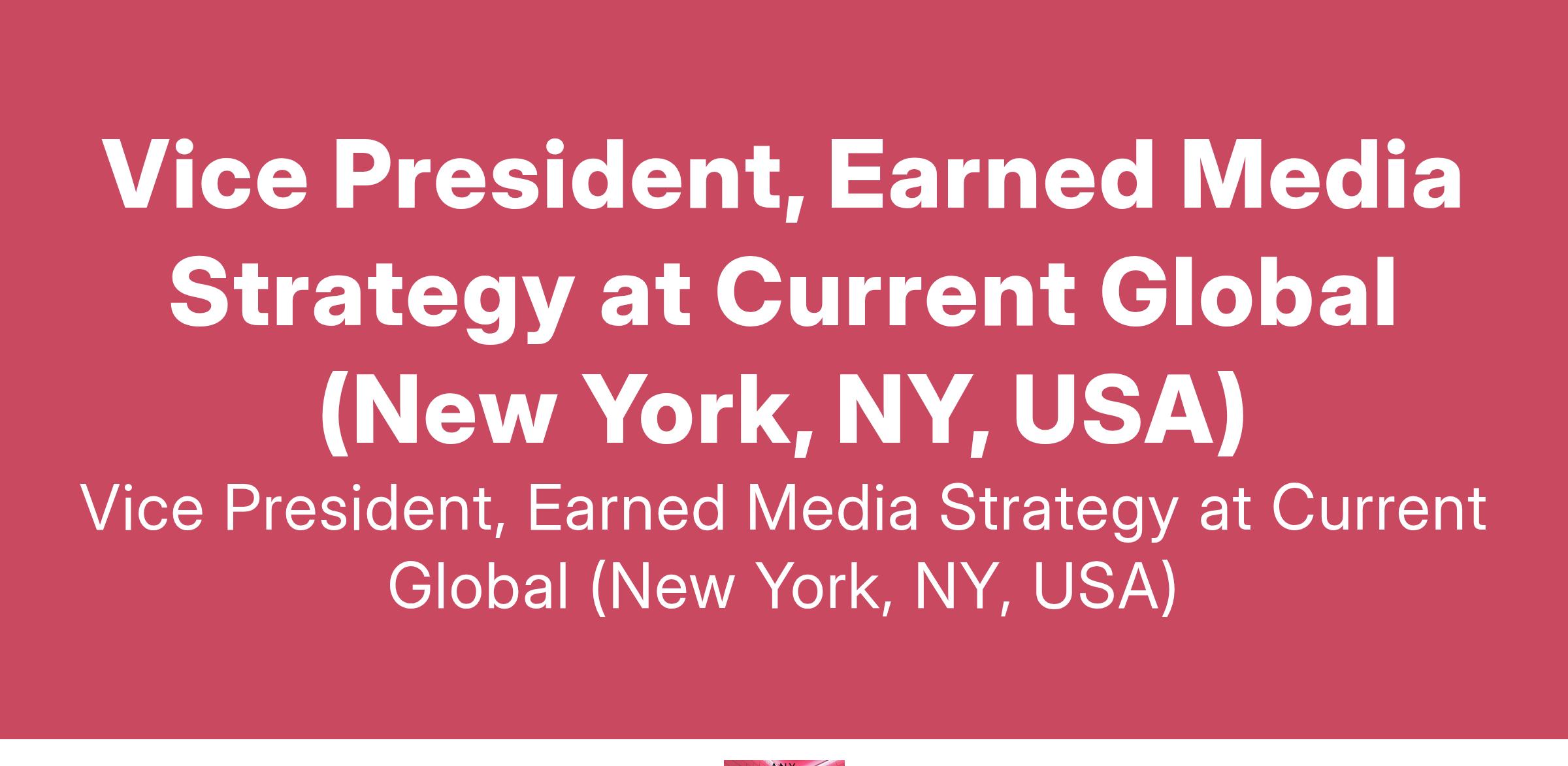 Vice President, Earned Media Strategy at Current Global (New York, NY, USA)