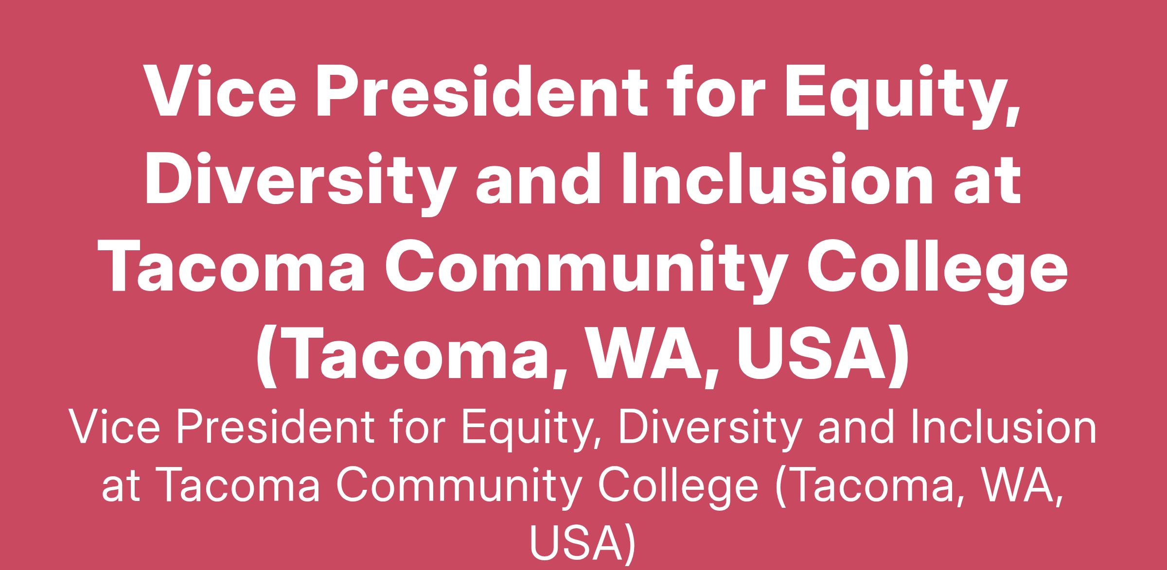Vice President for Equity, Diversity and Inclusion at Tacoma Community College (Tacoma, WA, USA)