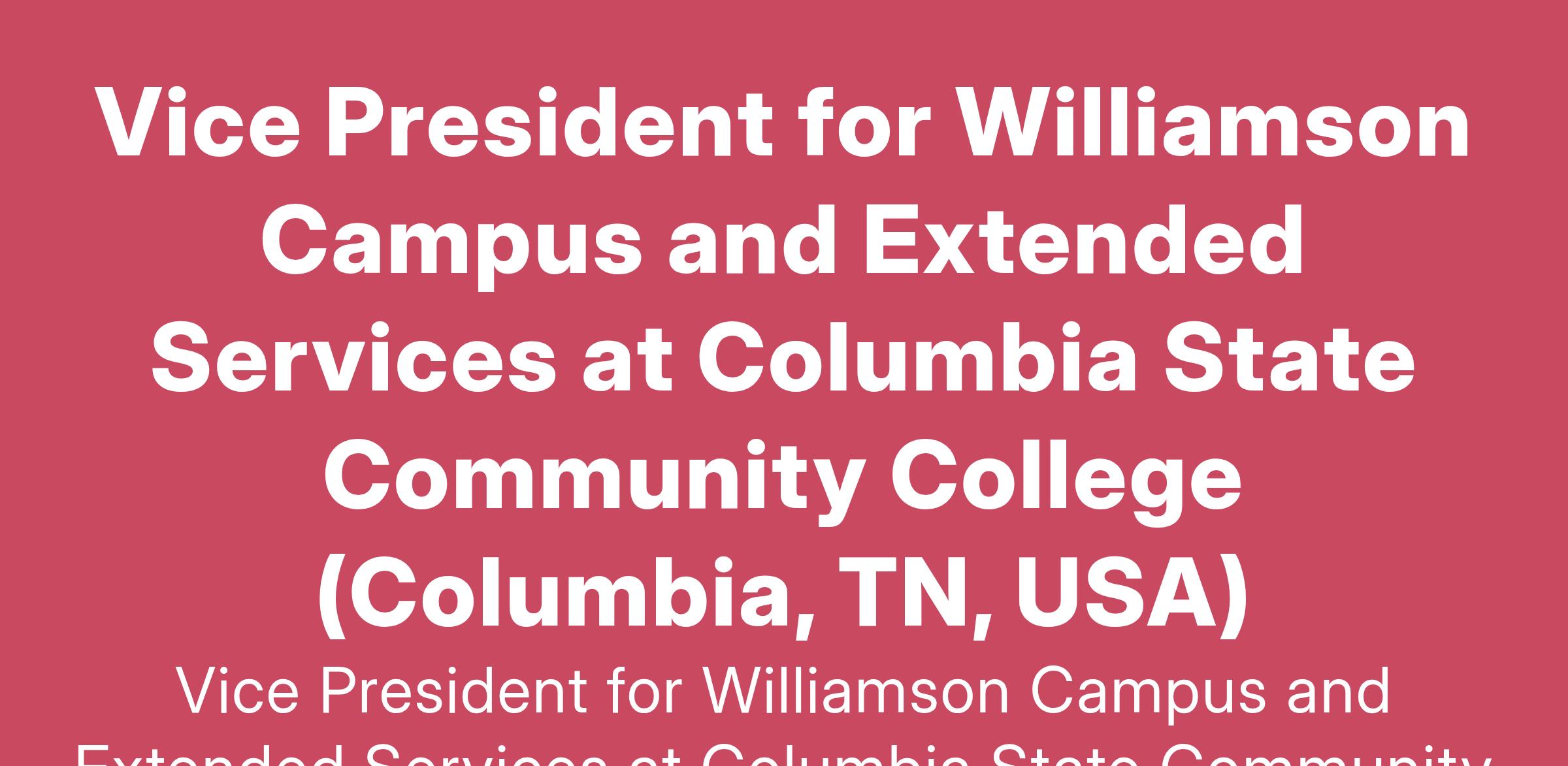 Columbia State Community College seeks a Vice President of Williamson Campus and Extended Services