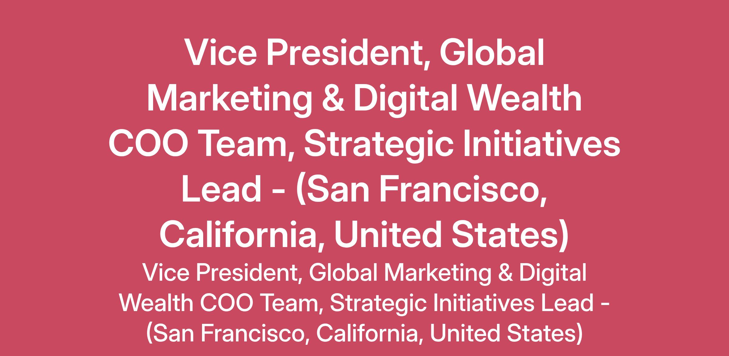 The COO Team provides business management and oversight of the Global Marketing & Digital Wealth organization, including measurement and insights, talent strategy, operating and organizational effectiveness, and risk management.
