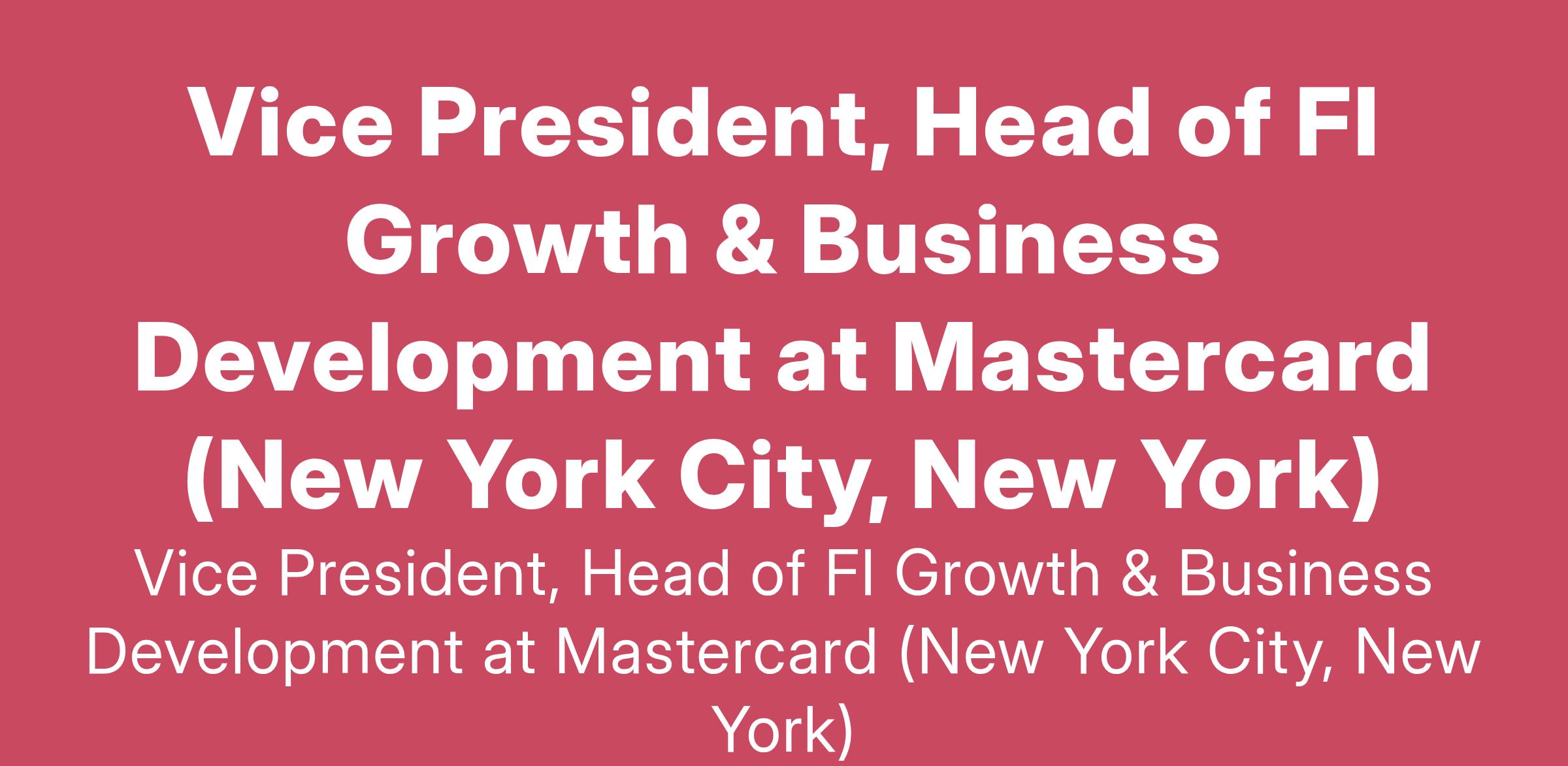 Vice President, Head of FI Growth & Business Development at Mastercard (New York City, New York)