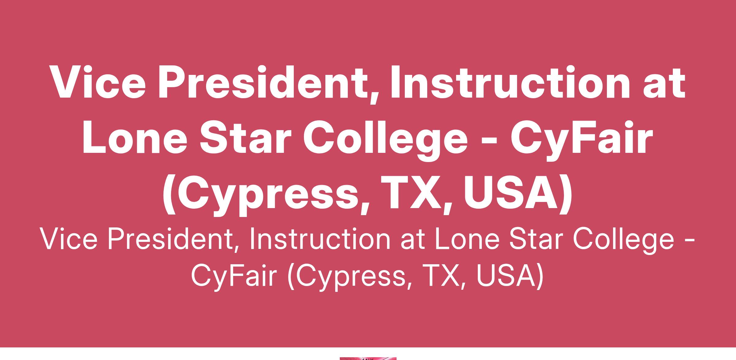 Vice President, Instruction at Lone Star College - CyFair (Cypress, TX, USA)