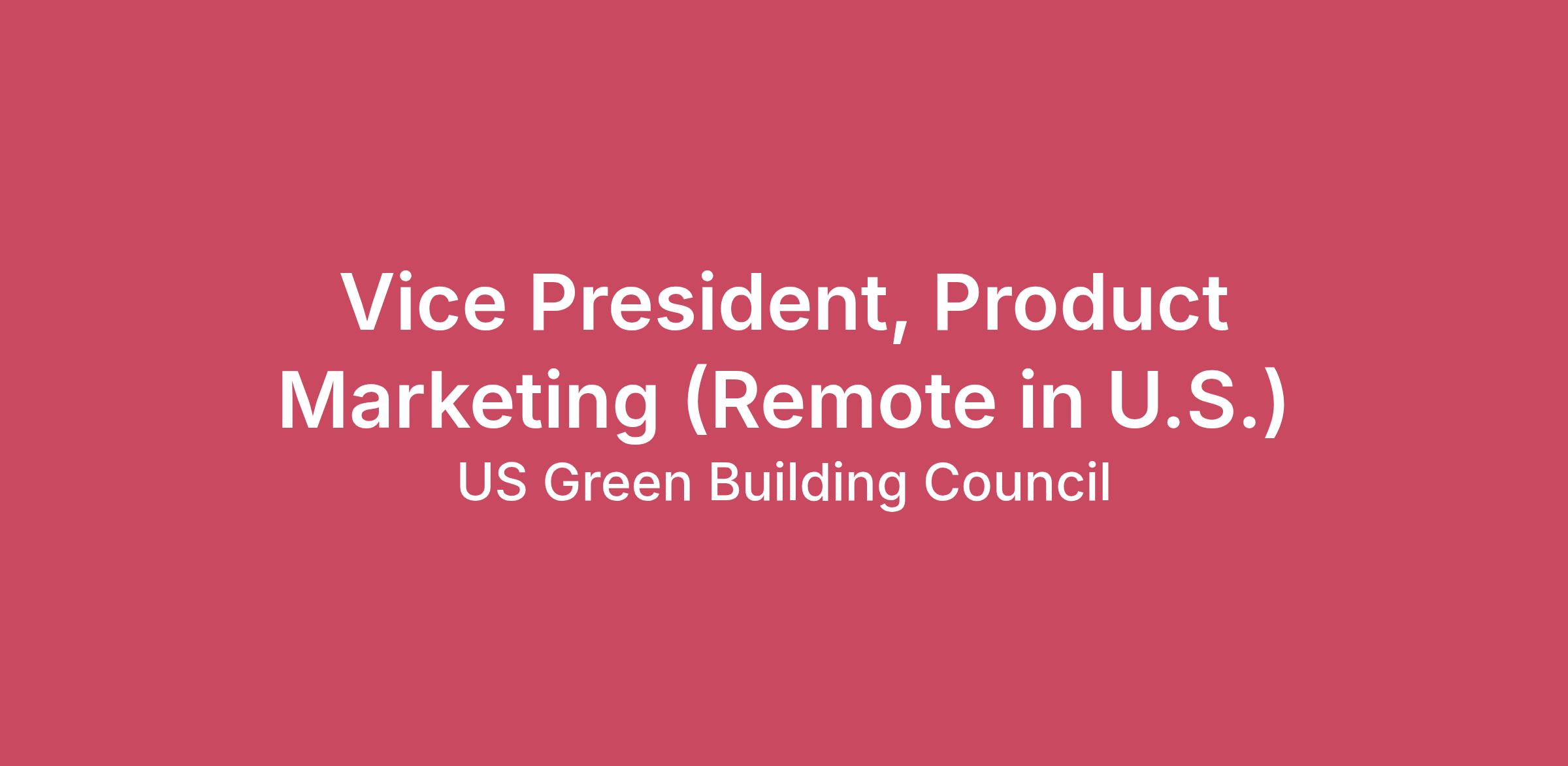 HOW YOU’LL MAKE AN IMPACTAs the Vice President, Product Marketing, you will lead the global product marketing function, driving the positioning, launch, and adoption of USGBC and GBCI’s products and services—including LEED, TRUE, SITES, and membership offerings.In this role, you will define how our products are brought to market—ensuring clear value propositions, strong market alignment, and measurable business impact. You will play a critical role in connecting Product and Growth teams to ensure our offerings resonate with target audiences and drive adoption at scale.Reporting to the SVP, Marketing and Communications, you will build and lead a high-performing product marketing team and partner closely with Product Management and Growth, and Sales to deliver effective go-to-market strategies that support organizational growth and mission impact.Key ResponsibilitiesLead global product marketing strategy across the full product lifecycle—from concept through launch, growth, and sunset Build and scale a high-performing product marketing team, establishing best practices, structure, and operating rhythms Develop and oversee Marketing Requirements Documents (MRDs), product positioning, and competitive analysis to inform go-to-market strategies Define clear value propositions, messaging frameworks, and positioning strategies based on market insights and customer needs Partner with Product teams to translate product strategy into market-ready narratives and launch plans Lead go-to-market execution, including pricing, packaging, distribution channels, and integrated campaign strategies Develop and deliver sales enablement tools (e.g., decks, battle cards, messaging guides) to support pipeline generation and revenue growth Conduct and leverage market research, customer insights, and competitive intelligence to inform strategy and product development Establish and track performance metrics to measure product marketing effectiveness and continuously optimize campaigns Ensure consistent and compelling product messaging across all channels and touchpoints Partner cross-functionally with Growth, Sales, Communications, and external partners to drive coordinated campaign execution Capture and integrate market feedback to influence product innovation and continuous improvementAssessment NoticeCandidates who advance in the interview process will be required to complete an assessment, more details will be provided as the time approaches. REQUIRED QUALIFICATIONSExperience 15+ years of marketing experience, including 10+ years in product marketing leadership roles Proven success leading end-to-end product launches and scaling products in competitive, global markets Experience in sustainability, green building, real estate, SaaS, or mission-driven organizations preferred Demonstrated experience building and leading global teams across multiple regions and time zones Experience working within a global product organization (preferably $75M+ revenue scale)EducationBachelor’s degree in Marketing, Communications, Business, or related field required MBA or advanced degree preferredTechnology/System(s)CRM platforms (e.g., Salesforce, HubSpot, Marketo)Marketing analytics and reporting toolsFamiliarity with Agile or Lean product development methodologiesSkillsProduct positioning and go-to-market strategy expertise Strong analytical and strategic thinking capabilities Cross-functional leadership and stakeholder management Exceptional communication, storytelling, and presentation skills Ability to translate complex product concepts into clear, compelling messaging Strong organizational and team leadership capabilitiesABOUT OUR TOTAL REWARDS PACKAGESalary Final compensation and benefits will be confirmed at the time of offer and may vary based on factors such as internal equity, relevant experience, qualifications, and employment status. Please note that salary negotiations will not extend beyond the top of the internal salary range.BenefitsWe offer you:Competitive compensation401(k) with employer matchingProfessional development reimbursementWe offer a healthcare plan through Cigna that includes medical, dental, vision, and prescription drugs. USGBC covers 100% of the premiums and an HRA that will assist you and your dependents in reaching the in-network medical deductible. You will only be responsible for the $300 individual / $600 family up front deductible for medical services before the employer funded HRA will process payments for your in-network claims Generous paid time off (12 paid holidays, 9 paid personal sick days and based on career level either 2 to 3 weeks PTO), including operations closed for a full week between Christmas and New Year’s6 weeks paid renewal leave after 7 years of continuous service LOGISTICSLocation: This position is remote in the U.S. Work Schedule: Monday–Friday, 9:00 AM–5:30 PM in candidate’s time zone.Travel %: 10 to 20% global and domestic travel EEO STATEMENTThe U.S. Green Building Council is an Equal Opportunity Employer. We celebrate diversity and are committed to creating an inclusive environment for all employees. All qualified applicants will receive consideration for employment without regard to race, color, religion, sex, pregnancy, national origin, age, sexual orientation, gender identity or expression, disability status, protected veteran status, or any other characteristic protected by law.ABOUT USU.S. Green Building Council (USGBC) is a mission-driven nonprofit dedicated to accelerating and scaling the transformation of the built environment. Through LEED—the world’s most widely used green building rating system— and initiatives likes Greenbuild, the Center for Green Schools and advocacy, USGBC empowers professionals to drive market transformation that advances human and environmental health, climate resilience, and equity.Green Business Certification Inc. (GBCI) is the world’s leading sustainability and health certification and credentialing bo
