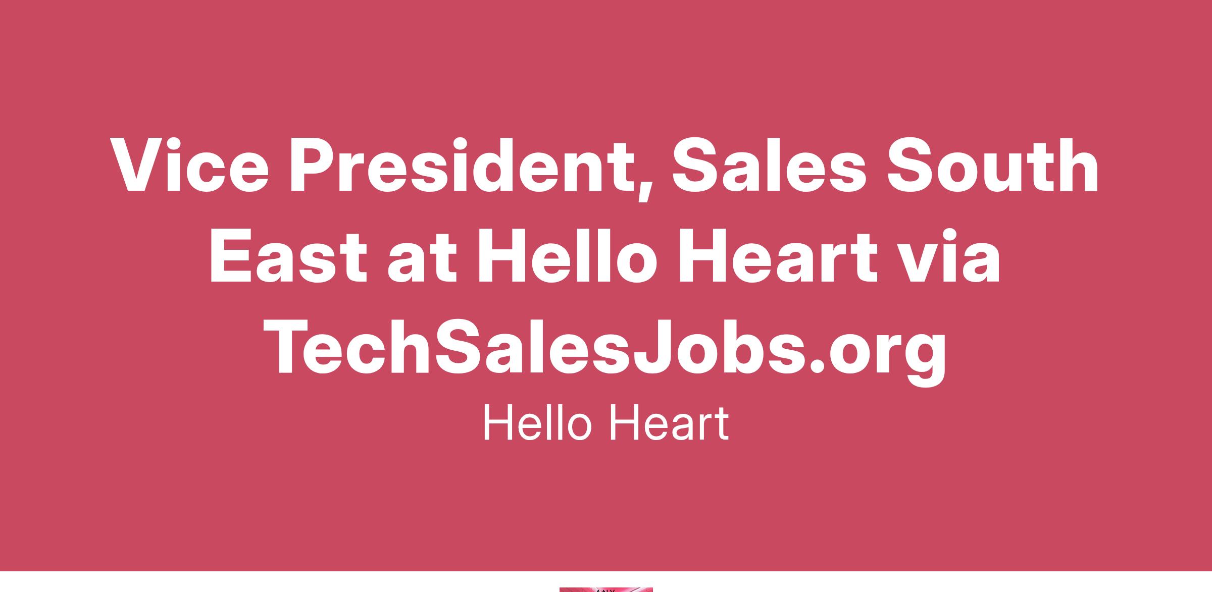 Hello Heart is seeking a Vice President Sales, South East to build and sustain the most complex, and ultimately most valuable prospective client and customer relationships. Our Vice President Sales, South Eastwill be responsible for developing strategic relationships with top benefits executives within employer-sponsored health plans, securing new business through direct contracts and channel sales, as well as working with key strategic partners and benefits consultants. Our team members must be willing to wear multiple hats and adapt to different situations as Hello Heart continues to grow and expand throughout the United States. A true consultative approach with prospective clients and their trusted partners is essential to success in this role.