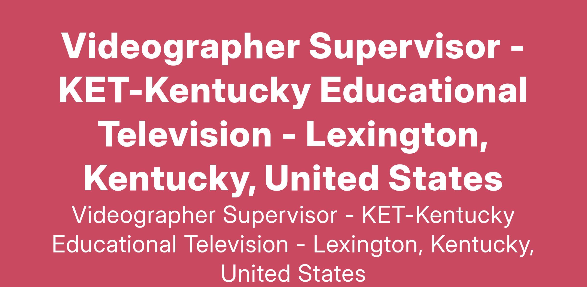 KET is Kentucky’s only statewide media organization, serving more than two million people each week with programs and services that educate, inform, and inspire. In addition to broadcasting PBS programming, KET produces a variety of award-winning local productions and creates high quality, nationally recognized educational resources. As a member of our team, you’ll help bring learning to life for viewers and users in Kentucky.Located in the Bluegrass region of Kentucky, Lexington is a beautiful and growing community. Full of charm and hospitality, you’ll find the region offers affordable living, outstanding educational opportunities, and world class sporting eventsAs the Videographer Supervisor, the individual selected for this role will supervise, direct and lead a team of videographers to ensure effective and successful execution of KET general content, public affairs and educational programs and digital content. Our ideal Candidate will:Effectively lead, coach, and mentor team of videographers to implement high standards of creativity, quality, and consistency by providing oversight and timely feedback. Hold regularly scheduled meetings; develop and manage strong relationships with team, review job descriptions as scheduled in order to provide performance oversight and timely feedback to staff, resolve issues and participate in hiring. Evaluate and approve leave requests and time sheets for team in accordance with agency policies and applicable laws. Regularly review video footage with each team member to identify areas for improvement and implementation of new skills and techniques. Collaborate with other production teams and the Production Operations Manager to ensure effective and successful execution of KET productions and digital content. Seek and participates in training opportunities related to videography, lighting, and video editing. Offer logistical leadership to productions and acts as crew chief on assigned shoots. Effectively collaborate with team members on equipment by sharing skills, knowledge and production processes and train team members as needed. Seek and participate in applicable training opportunities. Operate professional studio and field cinema and broadcast cameras for live and recorded productions. Work independently to create high quality video and accomplish KET production goals. Contribute to and execute the creative and editorial vision of KET productions. Proficiently uses filters, lenses, and camera stabilization equipment in field production to achieve the appropriate look as requested by the producer/director. Floor directs and operates teleprompter for studio productions as needed. Shoot, produce, and edit segments and packages as assigned for KET programs. Assist in assembling, striking, and storing studio sets. Assist in the set-up and striking of production-truck equipment including cameras, cable runs, and camera platforms. Operate professional production equipment including camera jib, floor dolly, cinema cameras, DSLRs, sliders, gimbals, and Steadicam equipment. Design professional lighting for sets and remote locations. Help clean and maintain studio and production equipment. Perform routine cleaning and upkeep of camera equipment. Act as a grip, lighting assistant and/or lighting designer as required. Drive and help clean production vehicles as needed.Ensure transition to, and training on, new production equipment and standards, and emerging production technologies. Demonstrate dedication to diversity in areas of responsibility and instill the same dedication in staff.Monitor production facilities, equipment, and technical capabilities. As a supervisor, perform other duties as assigned to support the mission of the organization. Successful applicants will have the following minimum qualifications, skills, and experience:Bachelor’s degree in Broadcasting, with at least five (5) years of professional content production experience in videography, lighting and editing. Must be able to work in a deadline-driven environment in an efficient, creative, and positive manner. Practical experience in television production may substitute for education on a year-for-year basis. Required experience and skills include editing, experience with professional field video cameras and related equipment, studio build-up cameras, cinema and DSLR cameras. Excellent people management skills: strong communication skills, conflict management and organizational skills, and strong attention to detail are required. Preferred skills may include limited directing, and FAA sUAS (Drone) certification. Must have strong computer, oral communications, and professional interpersonal skills; be available on a flexible schedule that includes evenings, weekends and overnight travel and maintain a professional demeanor and appearance at all times. Must be able to move/lift/carry equipment weighing up to 40 pounds, and occasionally operate equipment while standing/sitting for extended periods of time.Must maintain a valid driver’s license to drive KET vehicles. Working with KET has its benefits!KET offers a creative, engaging work environment with opportunities to collaborate and advance professionally. Additionally, employees are offered paid time off, several health insurance plan selections, and retirement savings options.The salary will be based on the qualifications and experience of the selected applicant. Connect with us now by applying at www.ket.org/jobs, and please send questions to [email protected].We are an Equal Opportunity Employer.