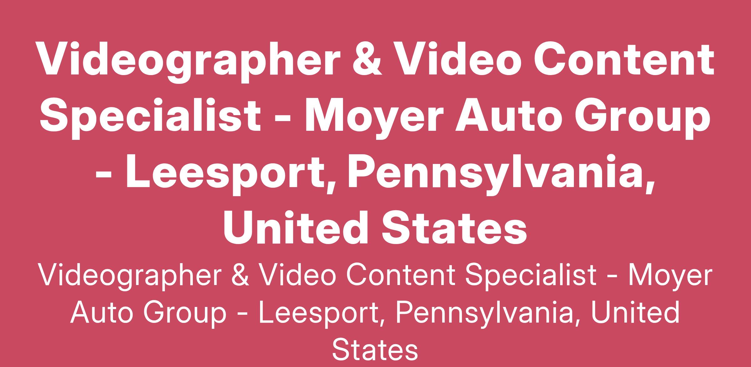 Moyer Auto Group is seeking a creative, detail-oriented, and highly skilled Videographer & Video Content Specialist to produce high-quality video content for our marketing campaigns, digital platforms, and in-house promotions. This role will involve creating compelling videos that showcase our vehicles, services, customer testimonials, and dealership events. The ideal candidate will have a passion for storytelling through video, strong editing skills, and the ability to collaborate effectively with marketing and sales teams to produce engaging, on-brand content.