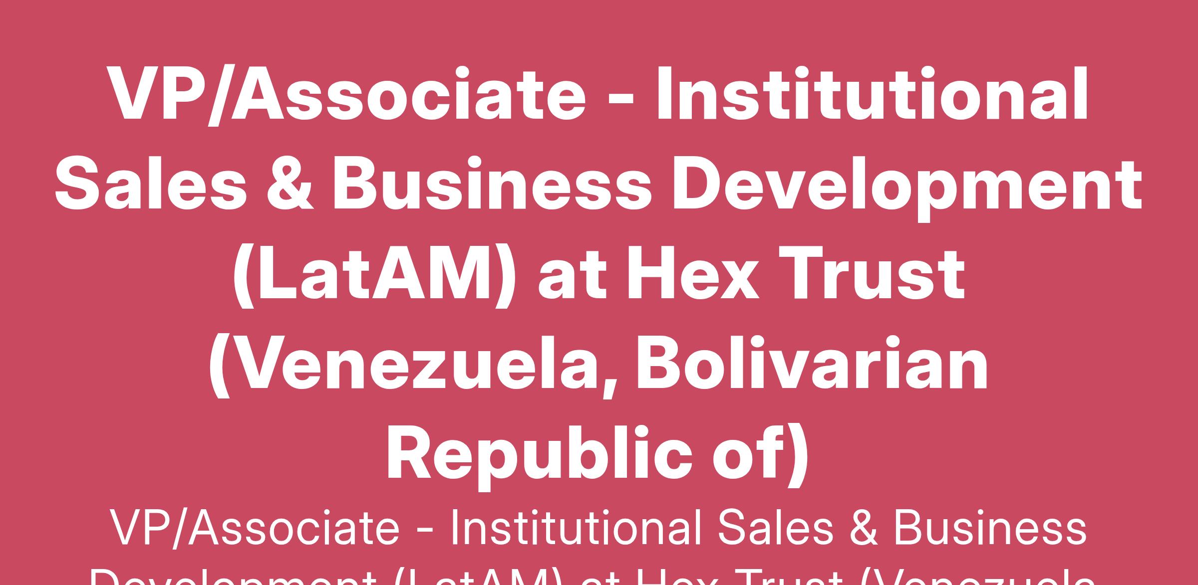 VP/Associate - Institutional Sales & Business Development (LatAM) at Hex Trust (Venezuela, Bolivarian Republic of)