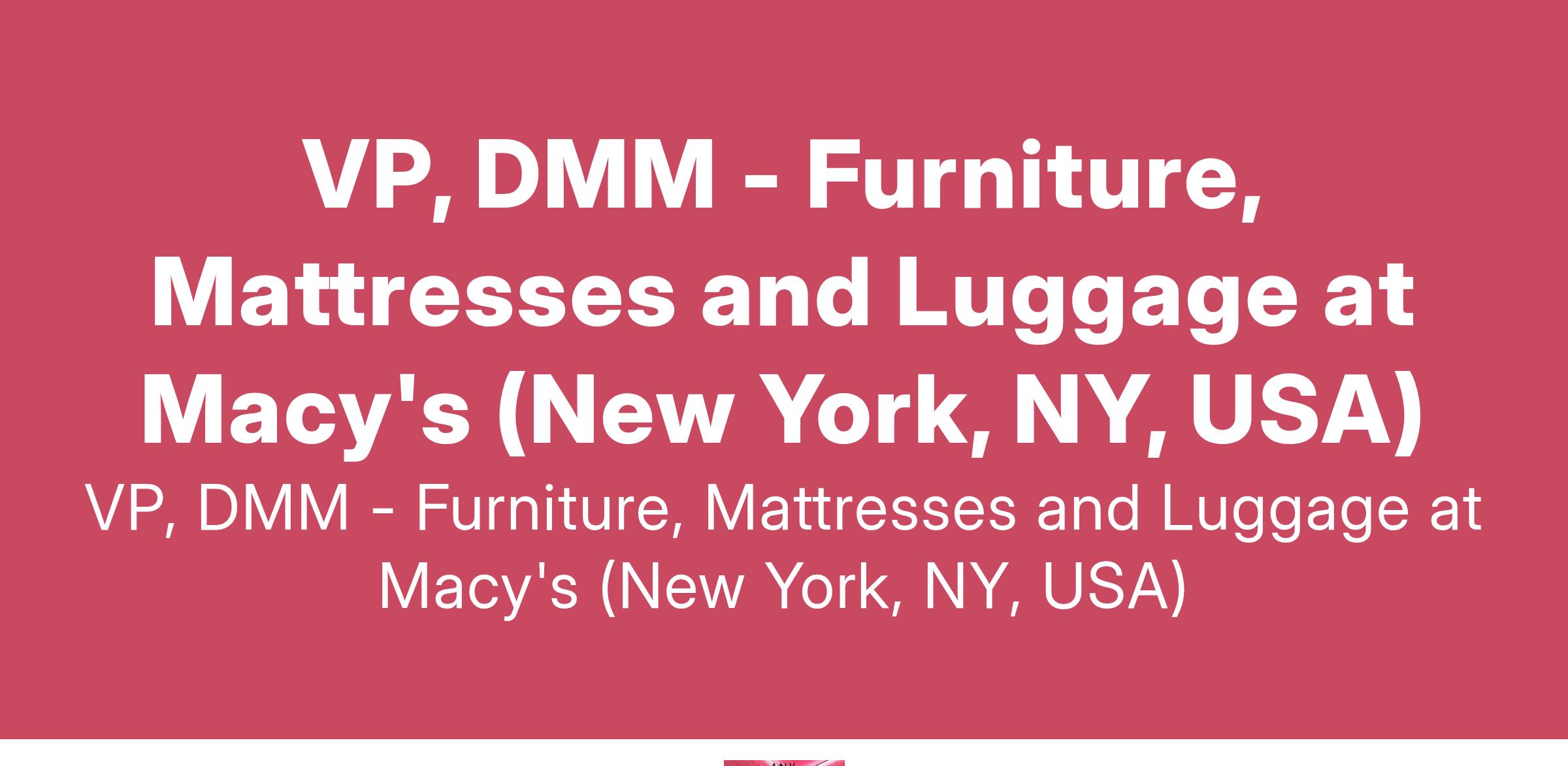 VP, DMM - Furniture, Mattresses and Luggage at Macy's (New York, NY, USA)