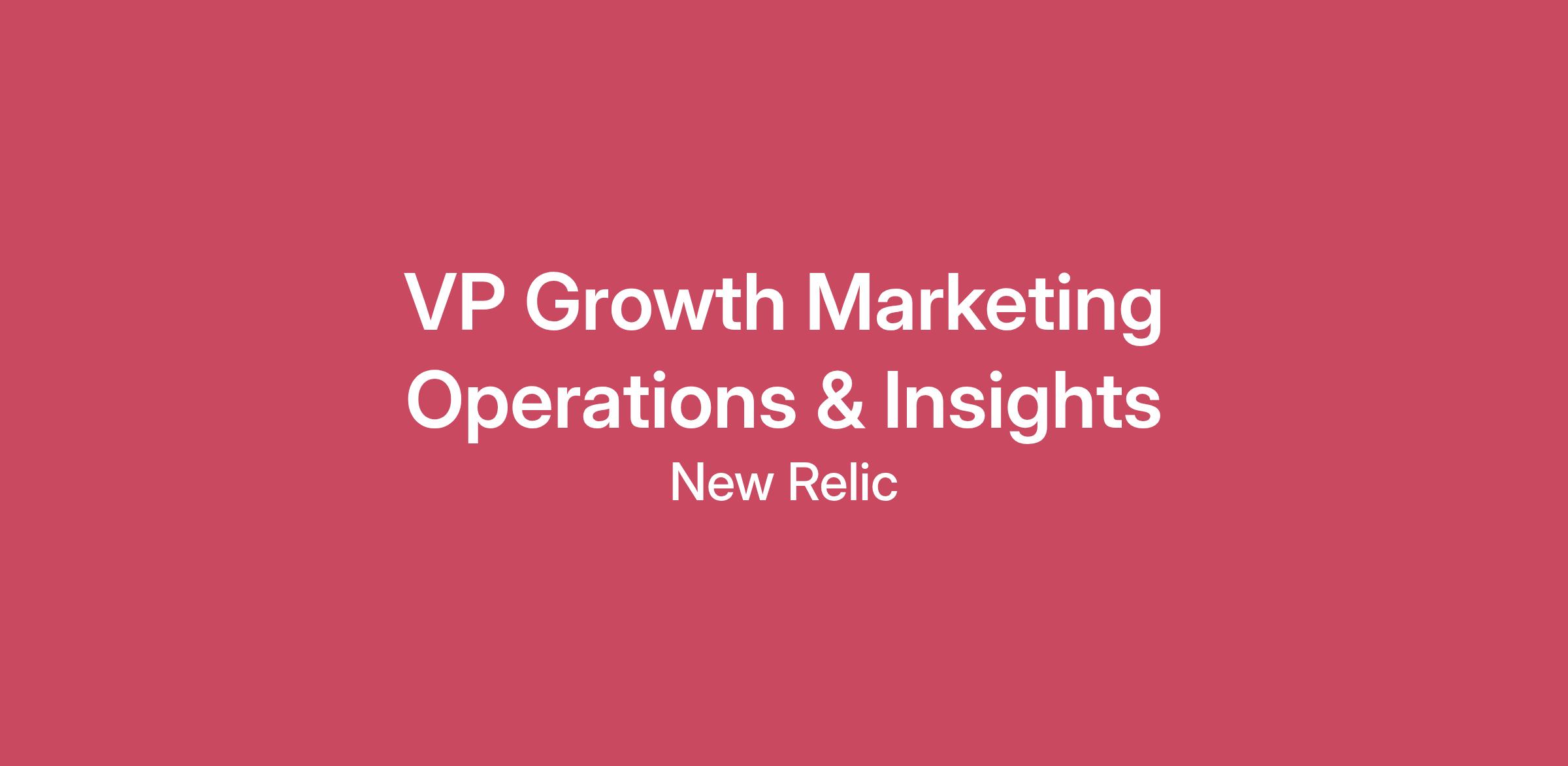 We are a global team of innovators and pioneers dedicated to shaping the future of observability. At New Relic, we build an intelligent platform that empowers companies to thrive in an AI-first world by giving them unparalleled insight into their complex systems. As we continue to expand our global footprint, we're looking for passionate people to join our mission. If you're ready to help the world's best companies optimize their digital applications, we invite you to explore a career with us!Your opportunity The VP of Growth Marketing Operations and Insights is the architect and operator of the marketing engine. This leader translates the CMO’s vision into an executable, measurable, and scalable strategy across planning, operations, analytics, and cross-functional alignment. This role owns marketing strategy, planning, operating cadence, measurement, and optimization—ensuring marketing delivers predictable pipeline, efficient growth, and clear ROI. This role partners deeply with Sales, Product, Finance, and RevOps to align go-to-market execution with company objectives. This is a high-leverage leadership role, ideal for a strategic operator who thrives at the intersection of analytics, systems, process, and executive decision-making. What you'll do Marketing Strategy & Planning: Lead annual and quarterly marketing strategy, translating corporate goals into actionable roadmaps, growth priorities, and investment allocations. Translate corporate and GTM strategy into clear marketing objectives, roadmaps, and execution plans Marketing Operations & Infrastructure: Own the marketing operating model and tech stack strategy, building scalable workflows across people, process, and technology. Partner with RevOps to ensure tight alignment across Marketing, Sales, and Customer teams Performance Measurement, Analytics & Insights: Define and manage the global measurement framework, tracking key metrics like CAC, LTV, and pipeline velocity to drive data-driven decisions. Build executive-level dashboards and insights for the CMO, CEO, and Board, and turn insights into actions Budgeting & Financial Management: Manage the marketing budget and financial forecasting in partnership with Finance, ensuring disciplined investment and optimized ROI. Support board and investor reporting with clear narratives and metrics Cross-Functional Leadership: Partner with Sales, Product, and Finance to ensure tight alignment on pipeline targets, market expansion, and product launches Team Leadership & Development: Build and mentor a high-performing Marketing Strategy & Ops team, fostering a culture of high integrity, accountability, and continuous improvement. Coach leaders to think strategically and operate with discipline This role requires 12–15+ years in B2B SaaS marketing, RevOps, or GTM strategy roles Prior experience in Marketing Strategy, Marketing Ops, RevOps, or GM-style roles Proven success scaling marketing in high-growth SaaS environments Experience partnering directly with CMO, CFO, and Sales leadership Deep understanding of B2B SaaS GTM models (PLG, sales-led, hybrid) Exceptional strategic thinking with strong execution discipline Highly analytical with fluency in metrics, dashboards, and financial models Strong operator: process design, systems thinking, and organizational clarity Executive-level communication skills—clear, concise, credible Ability to influence without authority and drive alignment across functions A calm, data-driven leader and trusted executive advisor who navigates complex ambiguity with high integrity, a bias toward action, and a strong sense of ownership. Please note that visa sponsorship is not available for this position. #LI-TK1 #LI-RemoteThe pay range below represents a reasonable estimate of the salary for the listed position. This role is eligible for a corporate bonus plan. Pay within this range varies by work location and may also depend on job-related factors such as an applicant’s skills, qualifications, and experience. New Relic provides a variety of benefits for this role, including healthcare, dental, vision, parental leave and planning, and mental health benefits, a 401(k) plan and match, flex time-off, 11 paid holidays, volunteer time-off, and other competitive benefits designed to improve the lives of our employees.Estimated Base Pay Range$250,000—$320,000 USDFostering a diverse, welcoming and inclusive environment is important to us. We work hard to make everyone feel comfortable bringing their best, most authentic selves to work every day. We celebrate our talented Relics’ different backgrounds and abilities, and recognize the different paths they took to reach us – including nontraditional ones. Their experiences and perspectives inspire us to make our products and company the best they can be. We’re looking for people who feel connected to our mission and values, not just candidates who check off all the boxes. If you require a reasonable accommodation to complete any part of the application or recruiting process, please reach out to resume@newrelic.com. We believe in empowering all Relics to achieve professional and business success through a flexible workforce model. This model allows us to work in a variety of workplaces that best support our success, including fully office-based, fully remote, or hybrid. Our hiring processIn compliance with applicable law, all persons hired will be required to verify identity and eligibility to work and to complete employment eligibility verification. Note: Our stewardship of the data of thousands of customers means that a criminal background check is required to join New Relic.We will consider qualified applicants with arrest and conviction records based on individual circumstances and in accordance with applicable law including, but not limited to, the San Francisco Fair Chance Ordinance.Headhunters and recruitment agencies may not submit resumes/CVs through this website or directly to managers. New Relic d