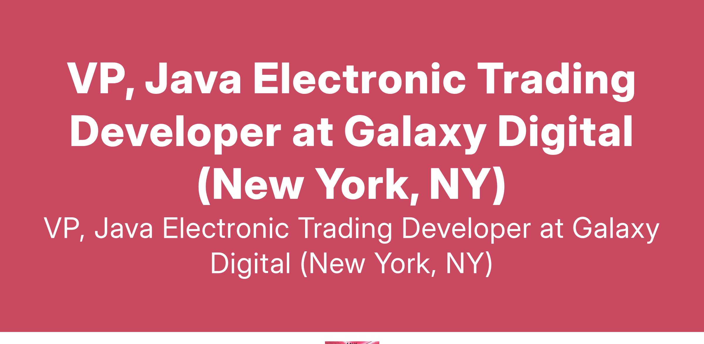 VP, Java Electronic Trading Developer at Galaxy Digital (New York, NY)