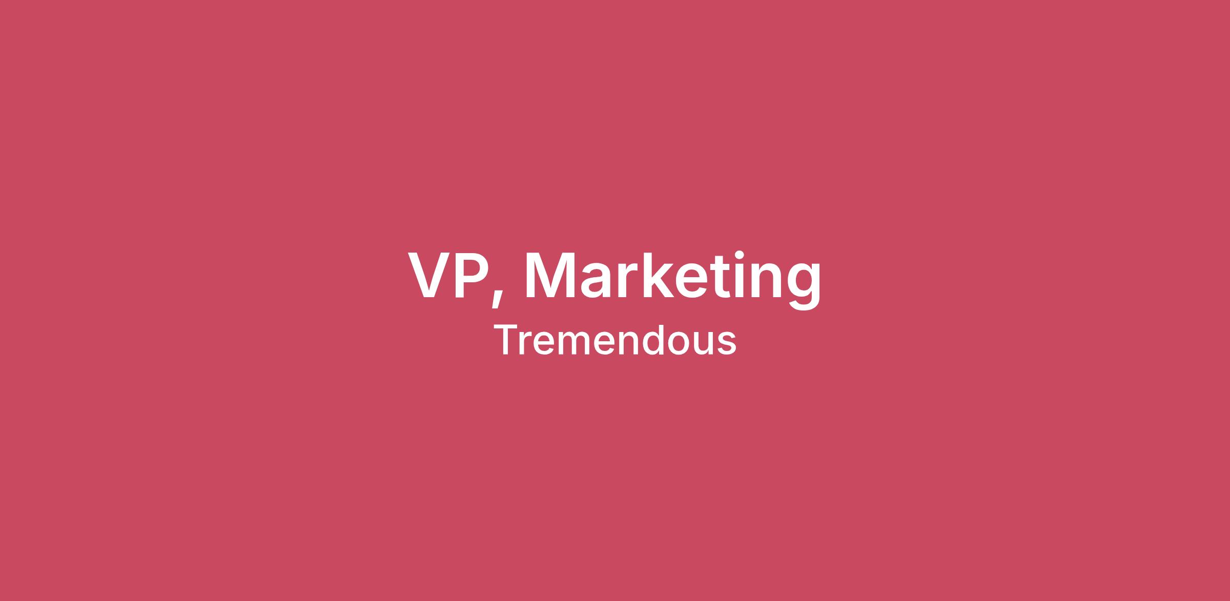 Tremendous is the fast, free, flexible way to send bulk payouts to people in over 230 countries and regions. 20,000+ companies ranging from mom-and-pops to Google, MIT, and United Way have sent over $1 billion, saving 15 hours a month on average.Our customers, who include marketers, researchers, HR teams, and nonprofits, rave about how quick and easy it is to use Tremendous — check the ratings on G2. Yet there’s a lot of complexity under the hood, including over 2,500 redemption options and plenty of banking infrastructure. This duality makes working here a fun challenge.Tremendous is profitable and growing without outside investors. Join us before our next international offsite.About the roleWe're looking for a VP Marketing to lead our 17-person marketing team. You'll report directly to the CEO and own the full marketing function: demand generation, product marketing, corporate marketing, and brand design. You'll inherit a strong team and help build Tremendous into a globally recognized brand.We want someone who can run a high-performing marketing org, brings deep expertise in demand generation, and thinks like an owner about the business. This role requires big-picture thinking about the business and deep attention to execution details.You willHelp us become the default way companies pay people. For everything but payroll: research incentives, referral bonuses, employee rewards, customer rebates, contractor payments, etc. When a company needs to pay anyone, anywhere, we want Tremendous to be the obvious answer. You'll build the awareness and discoverability to get us there.Lead the full marketing function. You'll oversee demand generation, product marketing, corporate marketing, and brand design. That means owning everything from pipeline and positioning to how we show up visually and narratively in the market.Join the leadership team. You'll work closely with the CEO, COO, and VPs who steer the company. That means contributing to the direction of the business overall, not just running marketing.Own pipeline generation. Marketing is responsible for generating opportunities across both sales-led and self-serve motions. You'll focus on proven segments while testing new channels and audiences.Build the team. You'll inherit a high performing team and continue to develop it.Bring analytical rigor. You'll set the standard for data-driven decision-making in Marketing.Champion a test-driven approach. We expect Marketing to constantly experiment to find new growth opportunities.Integrate AI into how we work. We’re AI-pilled and expect leaders to foster a culture of AI experimentation.You have10+ years in marketing, with deep experience in demand generation or growth marketing. You've run a fast-paced, high-performing Growth or Demand Gen team.Experience at a growth-stage startup (50M+ revenue, 150-500 employees). You've seen what good looks like at scale but aren't too far removed from doing the work yourself.Rigorous analytical thinking. You go beyond standard marketing metrics to build models that drive resource allocation. You can interrogate assumptions, stress-test forecasts, and identify where the data is lying.A founder mentality. You think like an owner and reason from first principles about the business, not just the marketing function. You bring a point of view on strategy and push back when you disagree.Broad business acumen. You can intelligently reason about business strategy regardless of prior industry experience.Excellent written communication. Tremendous has an async, documentation-first culture.Why TremendousBuild a global brand. The opportunity is huge.Inherit a strong team. The foundation is in place.Exceptional compensation. Cash and equity well-above market.Smart people and a great culture. See our company handbook.