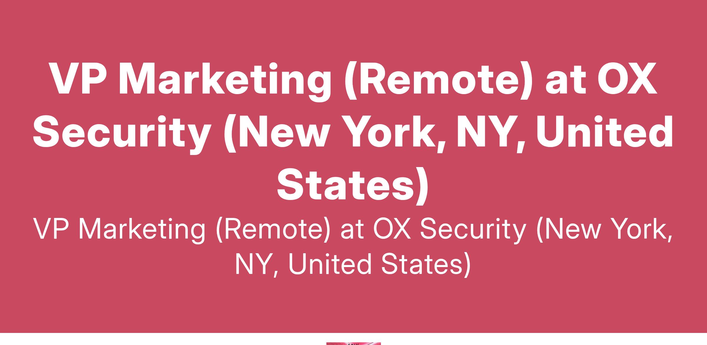 VP Marketing (Remote) at OX Security (New York, NY, United States)