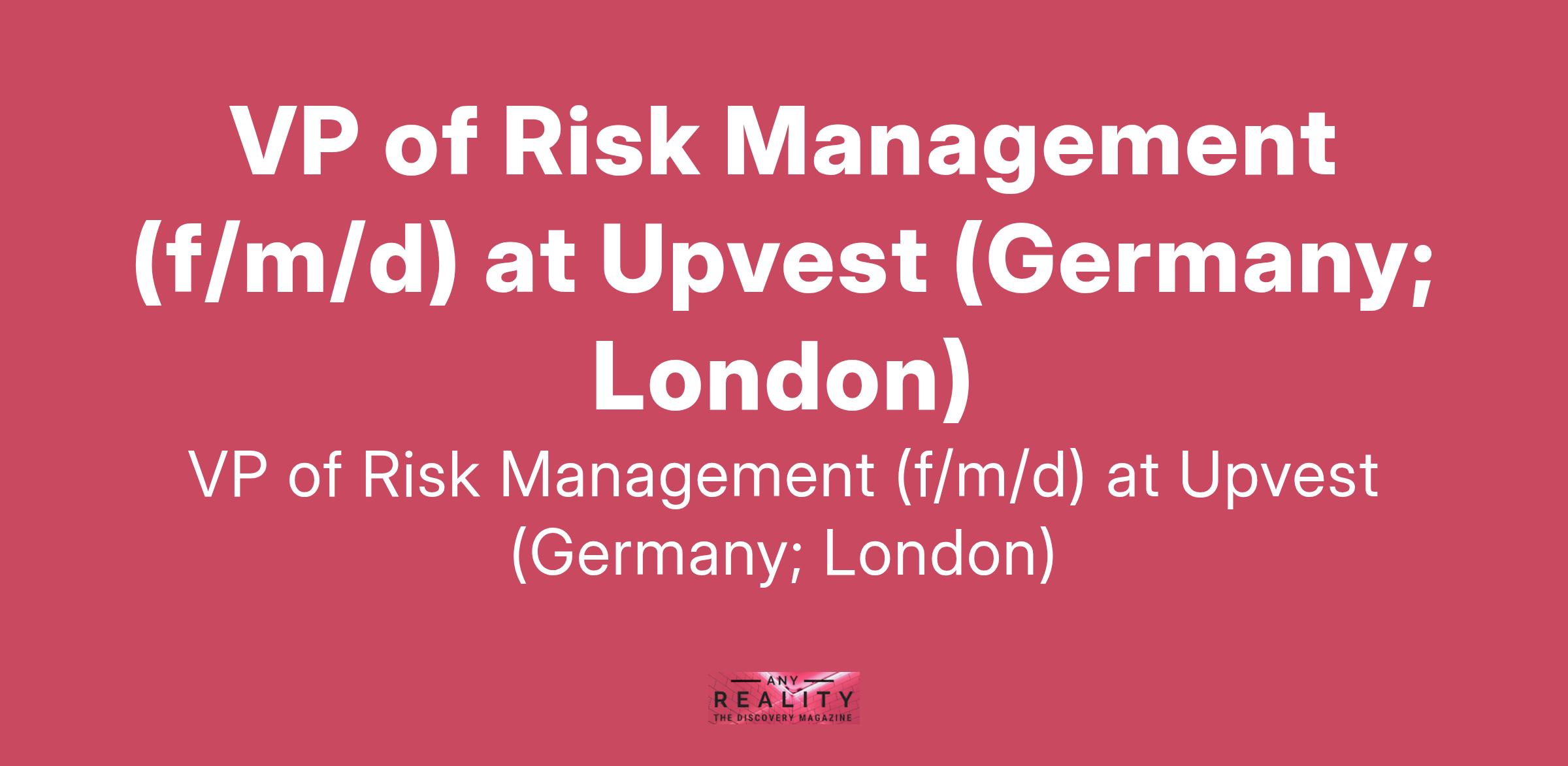 VP of Risk Management (f/m/d) at Upvest (Germany; London)